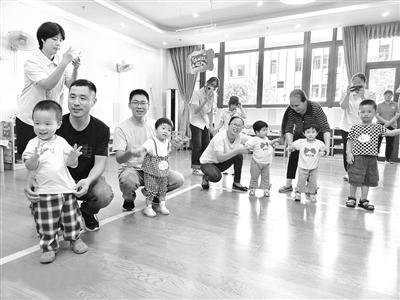 现场,19名孩子在老师的带领下,与自己的爸爸妈妈进行亲子游戏。游先生与妻子是双职工,两岁的女儿还不到入园年龄,工作日他们很难抽出时间陪伴孩子。得知区总工会开办职工子女托育班,立即报了名。“托育班离家很近,又是总工会举办的,孩子能在这里与同龄小朋友互动,我们很放心。总工会真是为我们解决了后顾之忧。”游先生说。