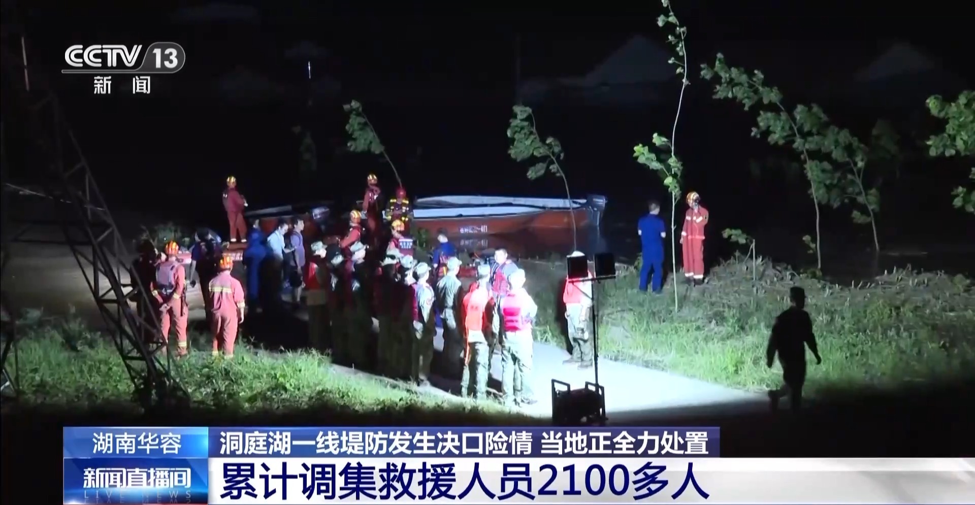 总台记者 尧遥:我身后就是洞庭湖和出现险情的堤坝。出于安全考虑,以及要给抢险救援车辆让出通道,这里是我们直播车能抵达的、距离决口险情最近的地方。