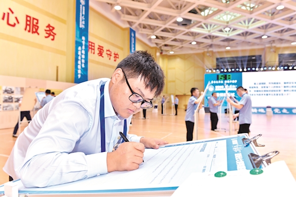 中国铁路沈阳局集团有限公司长春车辆段选手在情景模拟考试现场。