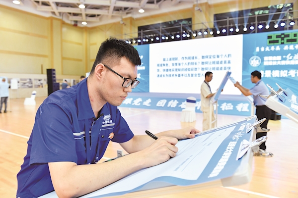 中铁十八局集团有限公司选手在情景模拟考试现场。