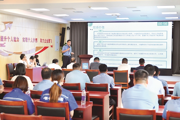 哈尔滨局集团公司佳木斯机务段选手参加创新命题公关环节比赛。