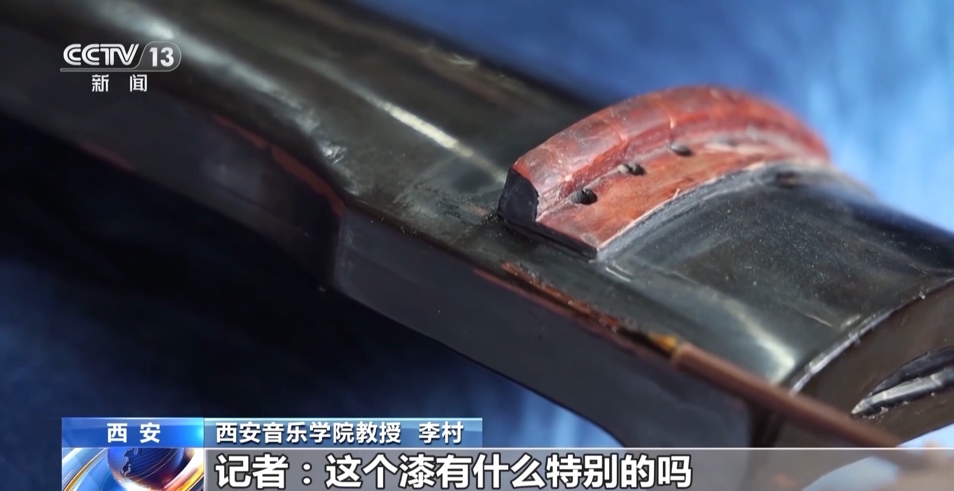 西安音乐学院教授 李村:这个是咱们传统的大漆,野生土漆,和现在的这个化学用漆是不一样的,是纯天然的。