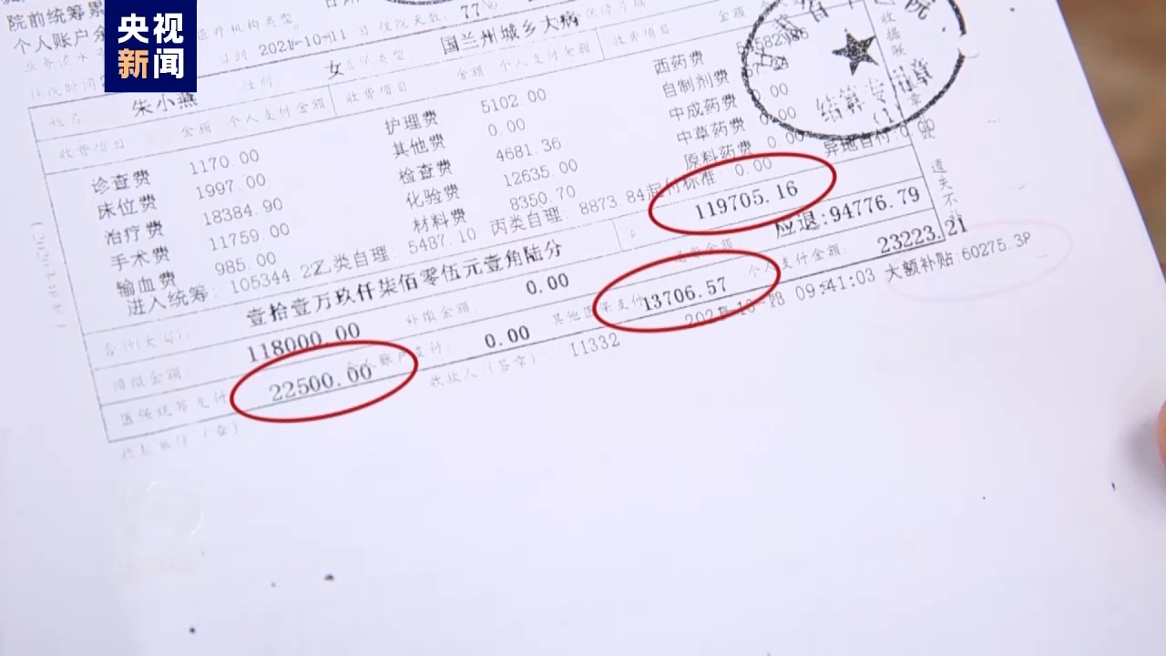甘肃兰州沈家岭村村民朱小燕一家为低保户。八年前,朱小燕查出结肠肿瘤,起初,面对医疗花费,一家人十分担心。但让朱小燕一家没有想到的是,几年间,她自费的比例在不断降低。2021年的一次手术总共花费119705元,经过基本医保、大病保险和医疗救助报销后,朱小燕自费为23223元,自费比例为19.4%。而且,民政部门针对她家庭综合情况,给予了2万多元临时救助,朱小燕花费了不到3000元。