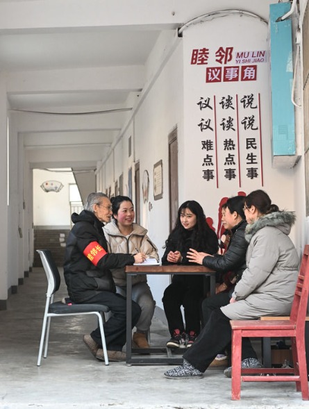 2024年1月25日,在江苏省句容市崇明街道建新社区,“睦邻长”、社区干部、网格员与居民代表一起议事。新华社记者 季春鹏 摄