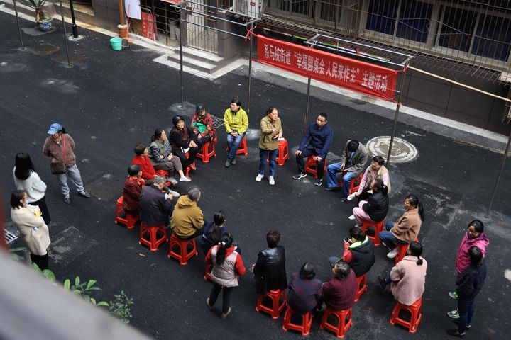 2021年11月20日,南昌市西湖区系马桩街道在罗家塘48号市委党校宿舍院开展“幸福圆桌会”。此次圆桌会主要围绕辖区居民自治公约征集群众意见,真正让居民共同参与到社区治理当中。新华社发(马悦 摄)