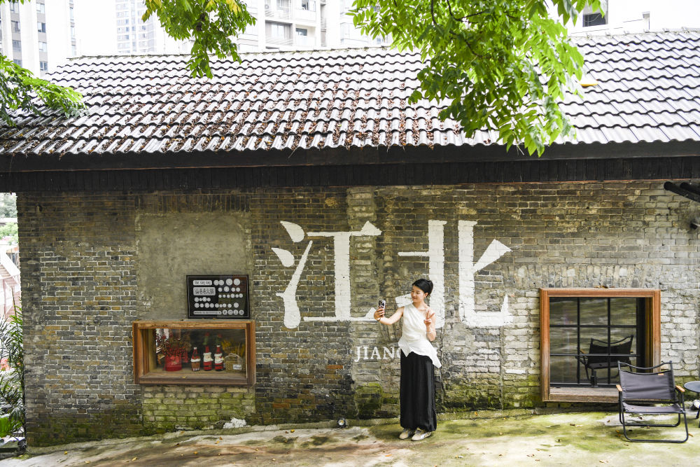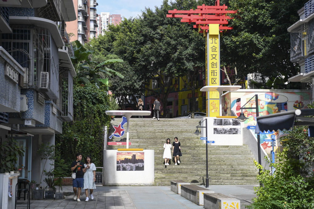 7月15日,游客在重庆市江北区北仓文创街区游览。