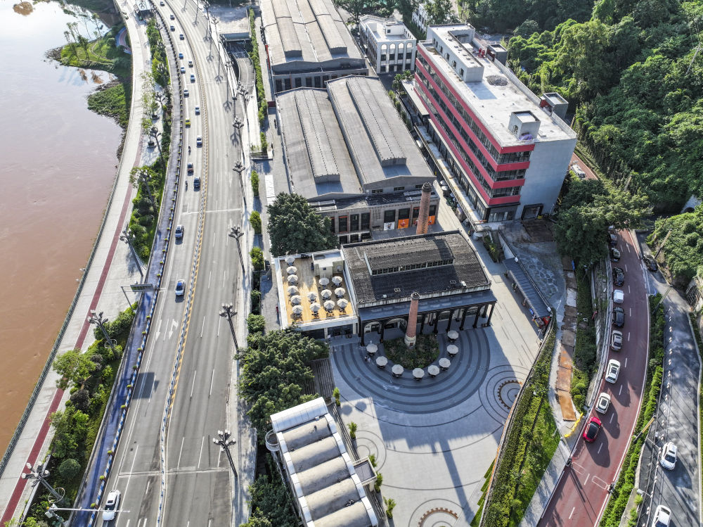 这是7月15日拍摄的重庆市江北区北仓文创街区一带景象(无人机照片)。