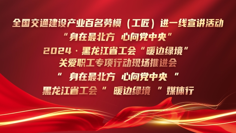 直播回顾丨“中国梦 劳动美”全国交通建设产业百名劳模(工匠)进一线主题宣讲暨2024·黑龙江省工会“暖边绿境”关爱职工专项行动现场推进会 7月24日,在美丽的祖国“北极”——漠河,全国交通建设产业百名劳模(工匠)进一线宣讲活动和“身在最北方 心向党中央”2024·黑龙江省工会“暖边绿境”关爱职工专项行动现场推进会隆重举行!中工网首页、视频号、微博同步直播。