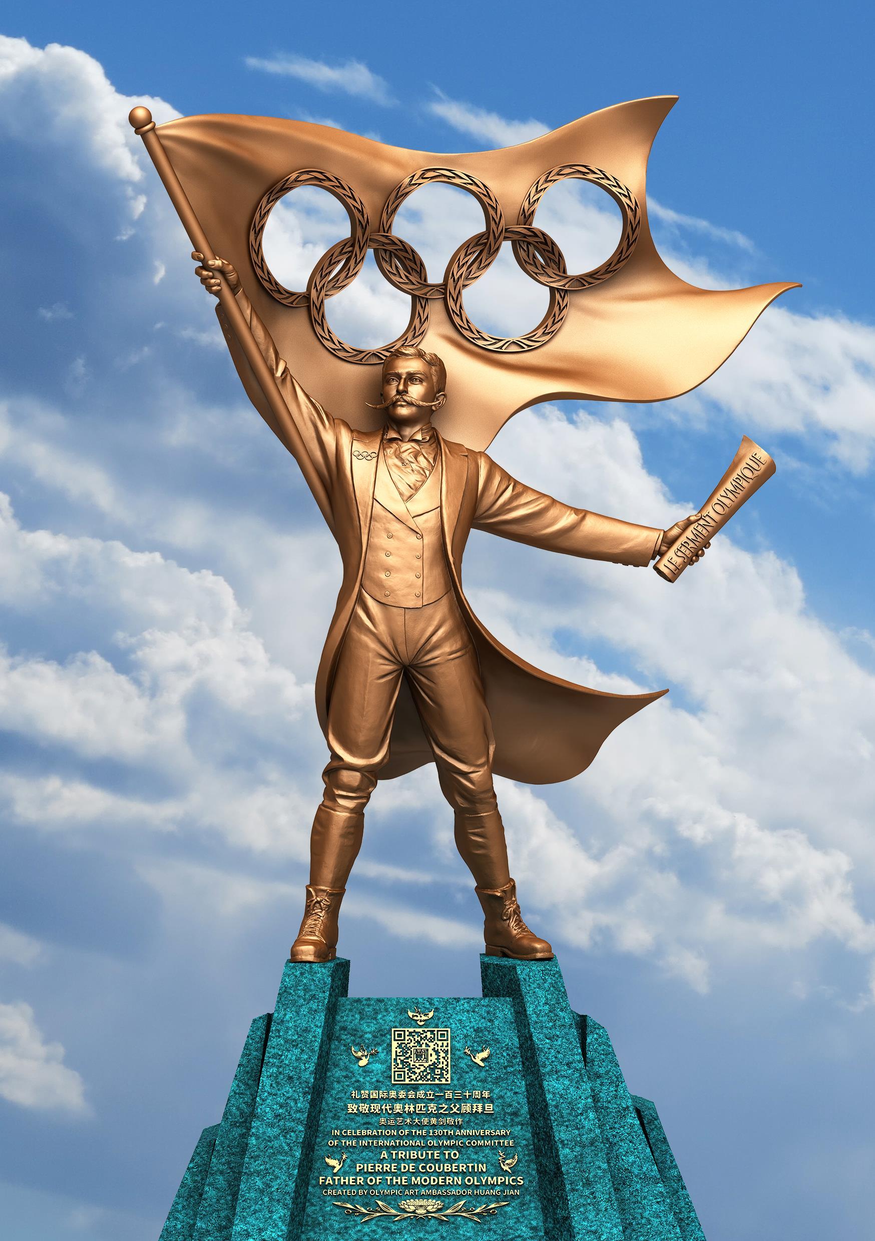希望这座讴歌现代奥运之父顾拜旦丰功伟绩的雕塑作品,能为现代奥林匹克发源地巴黎铸魂添彩,成为一座永远照耀人类团结、友谊、和平的奥林匹克丰碑。