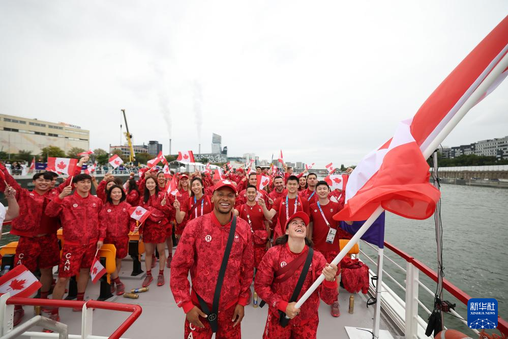 7月26日,加拿大体育代表团成员在开幕式前。新华社记者 曹灿 摄