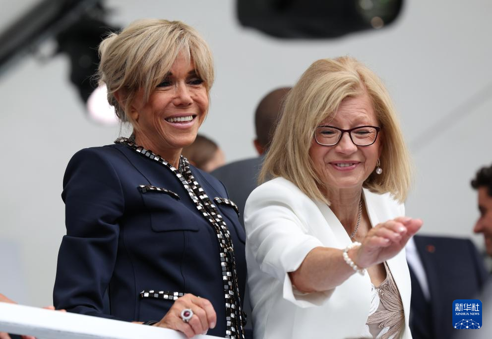 7月26日,法国总统马克龙夫人布丽吉特(左)在开幕式现场。新华社记者 高静 摄