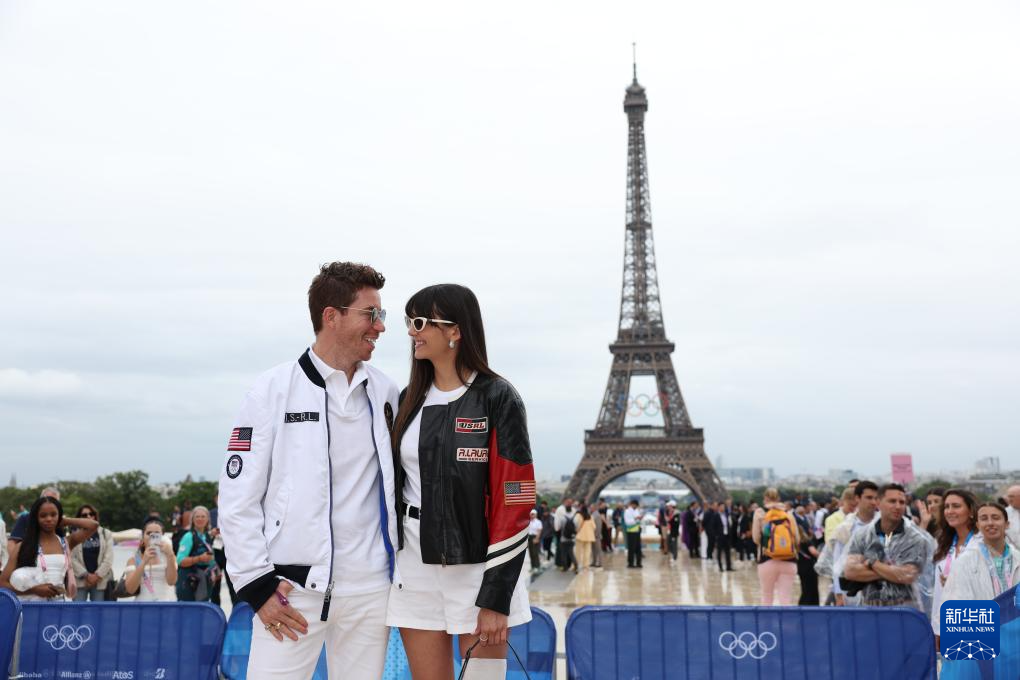 7月26日,单板滑雪名将肖恩·怀特(左)在开幕式开始前。新华社记者 李颖 摄