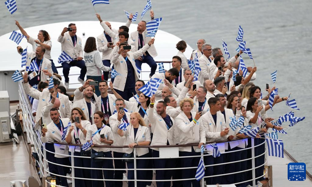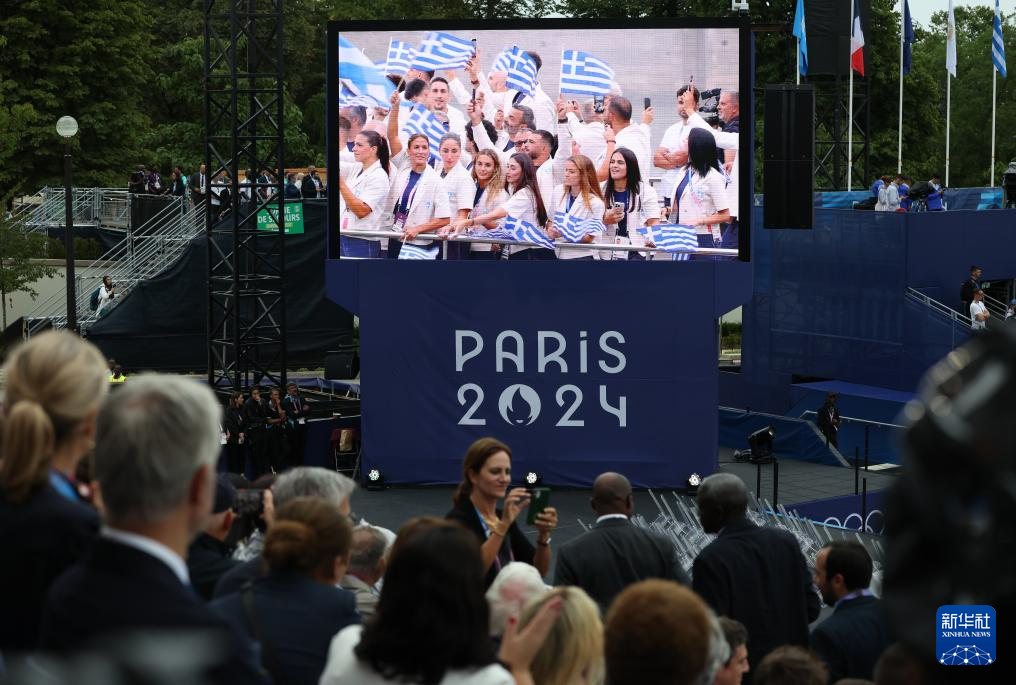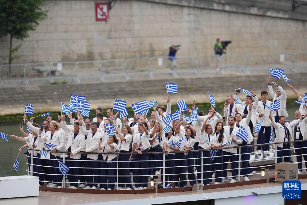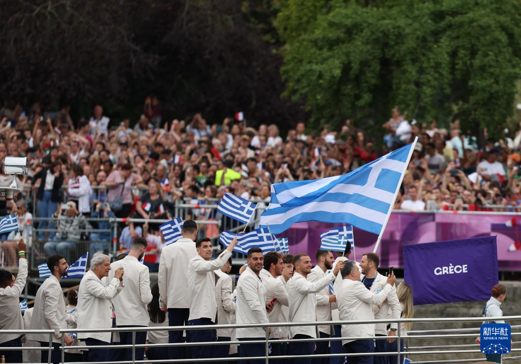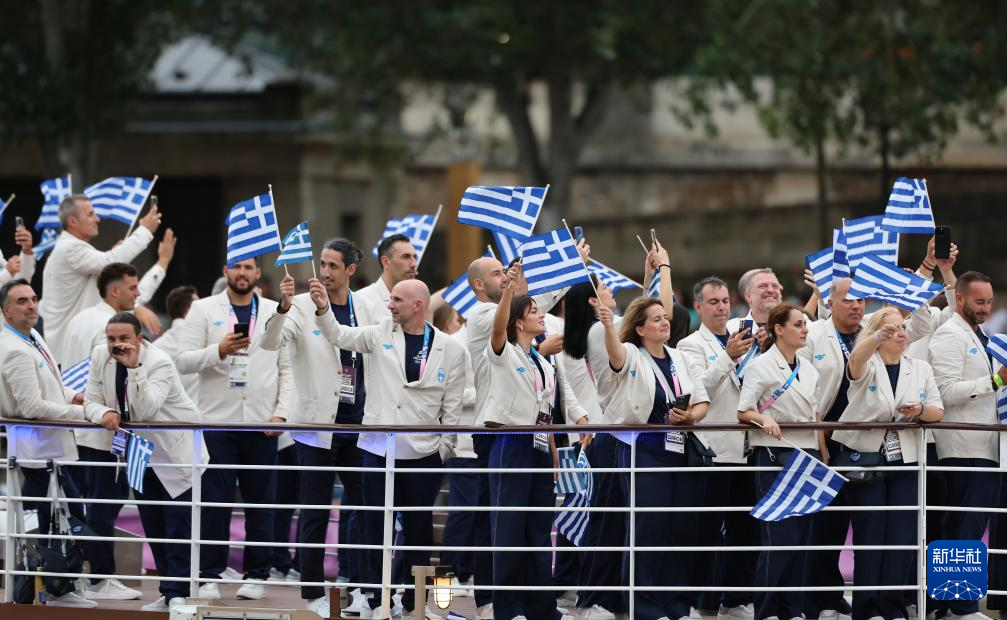 7月26日,希腊体育代表团成员在开幕式上。新华社记者 王东震 摄