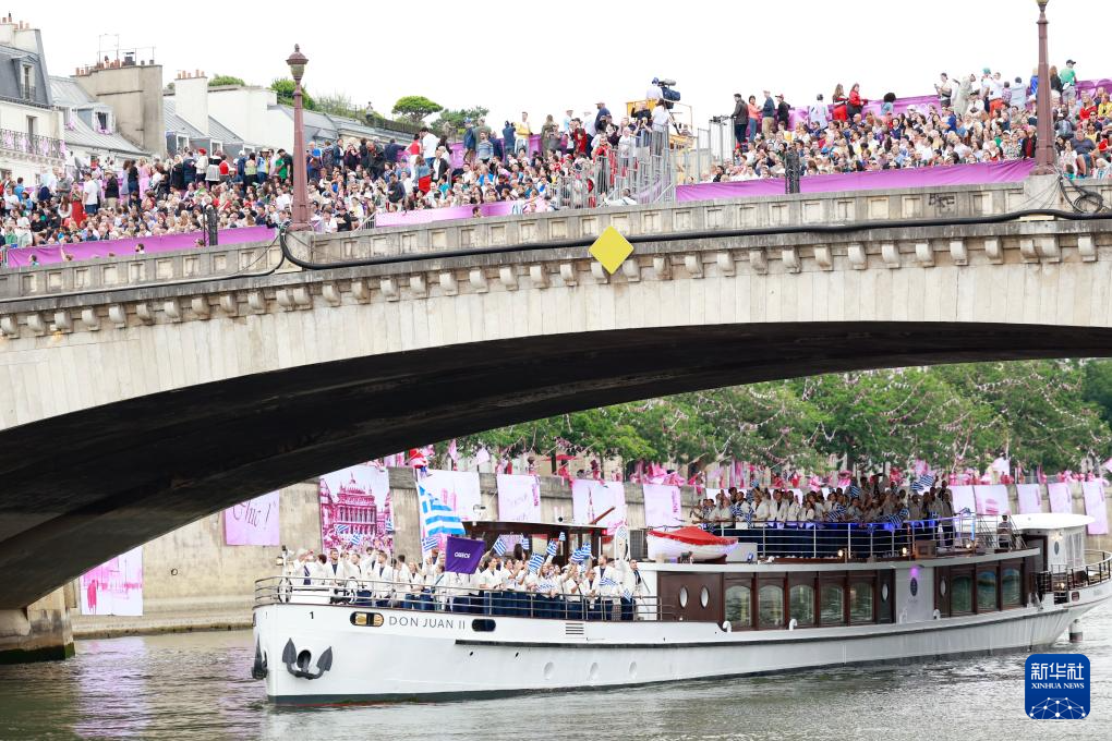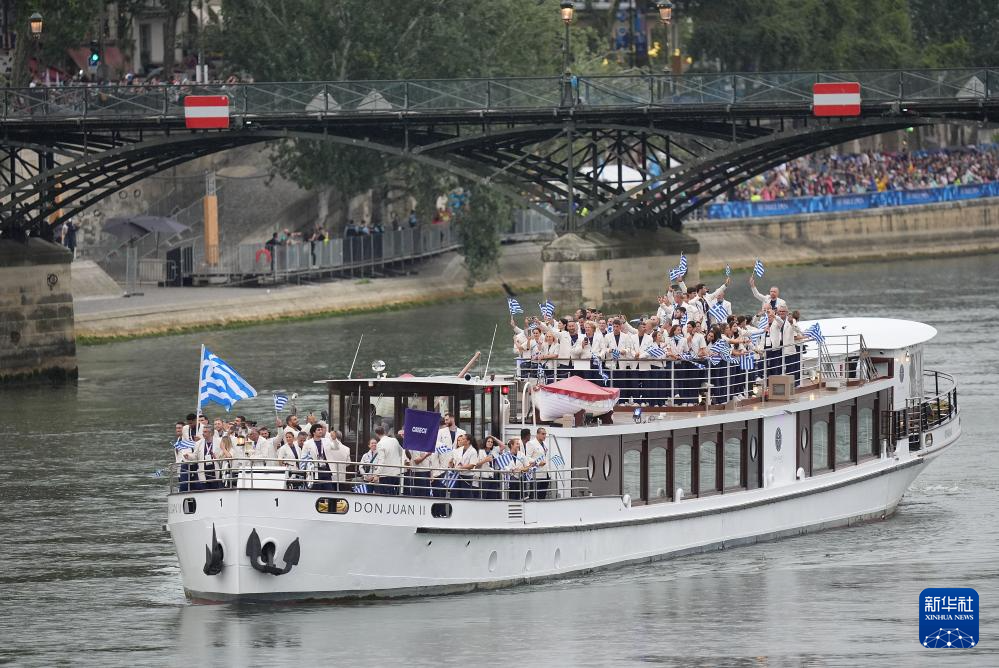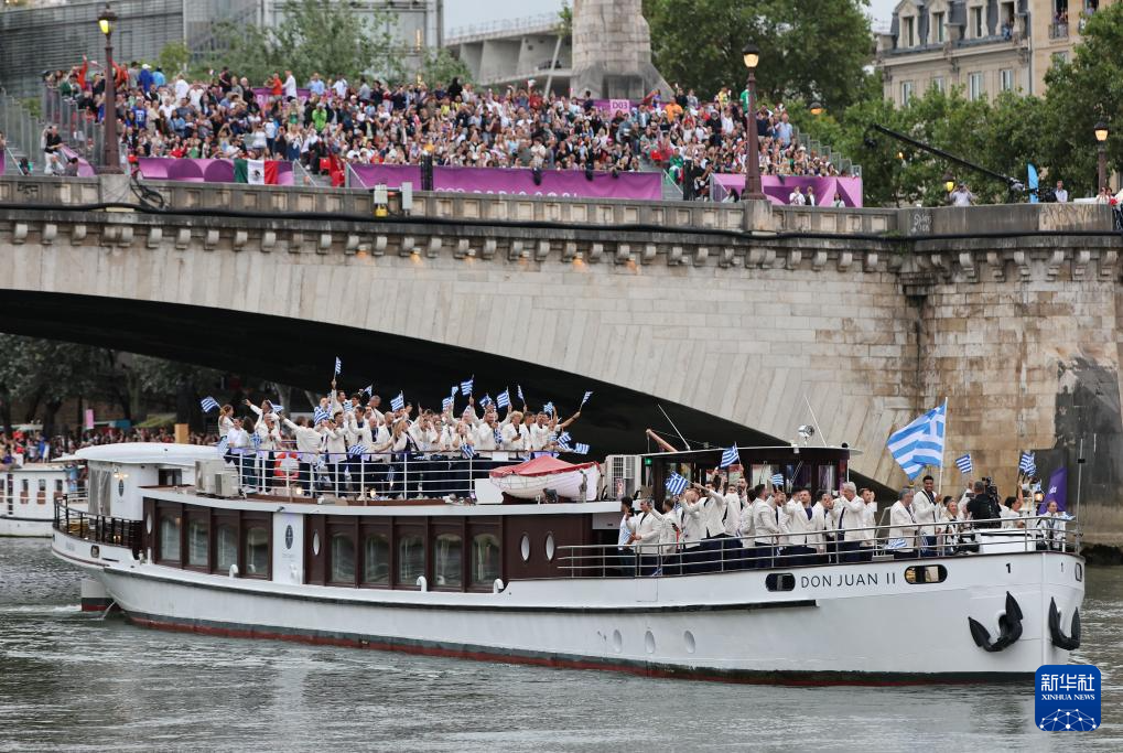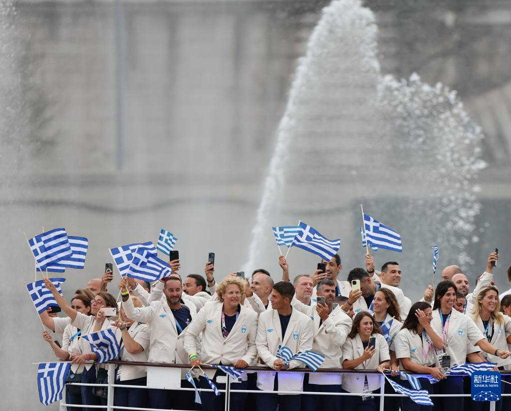 7月26日,希腊体育代表团成员在开幕式上。新华社记者 王东震 摄