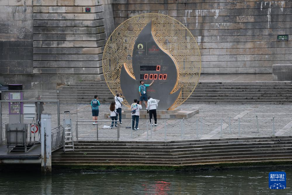 7月26日,志愿者与奥运倒计时牌合影。新华社记者 李明 摄