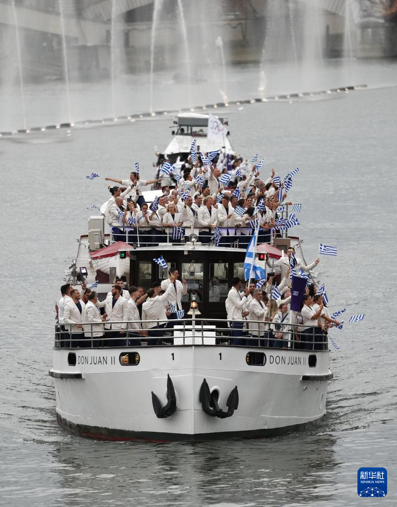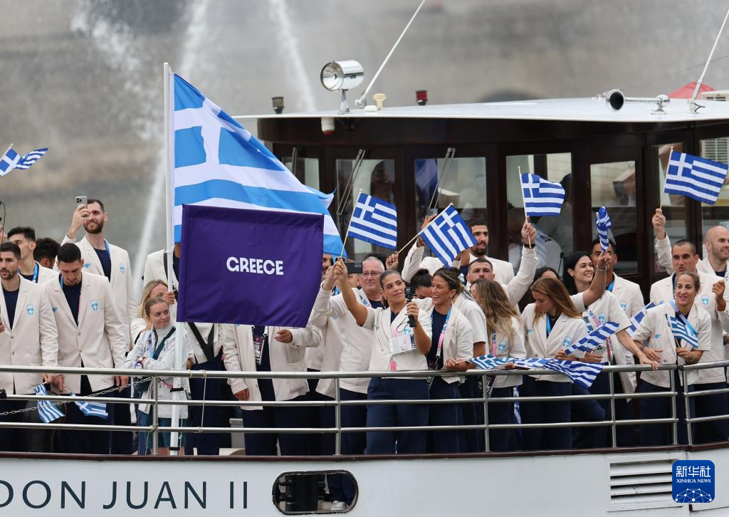 7月26日,希腊体育代表团在开幕式上。新华社记者 郭昱 摄