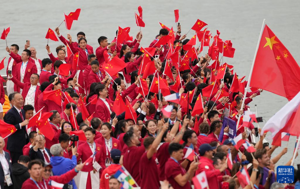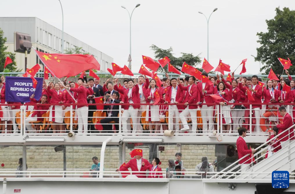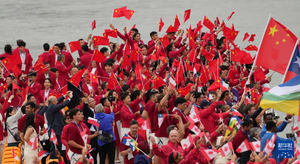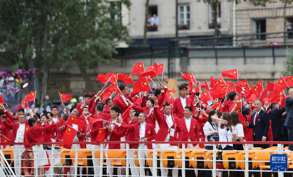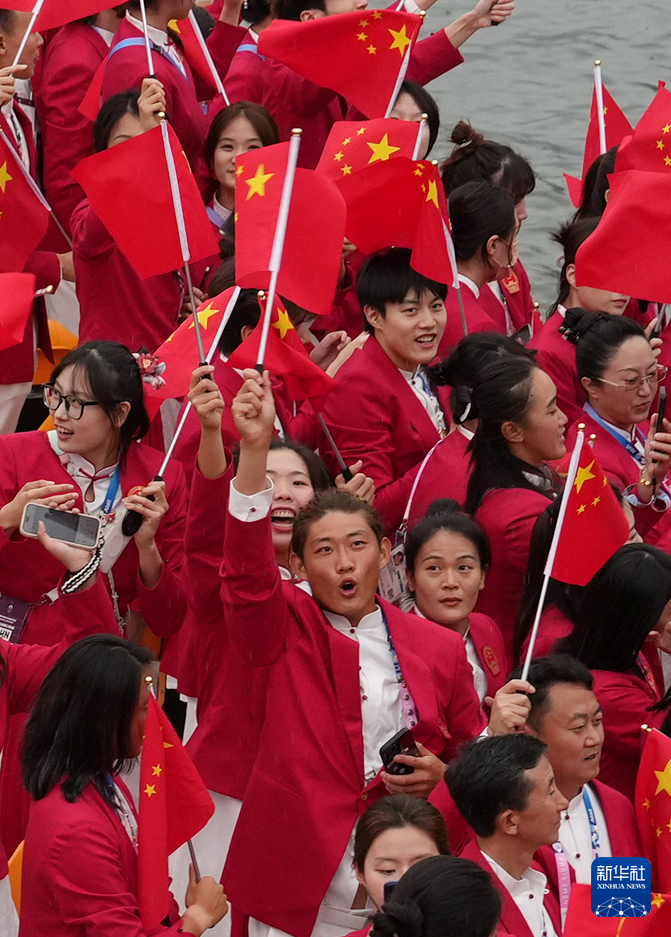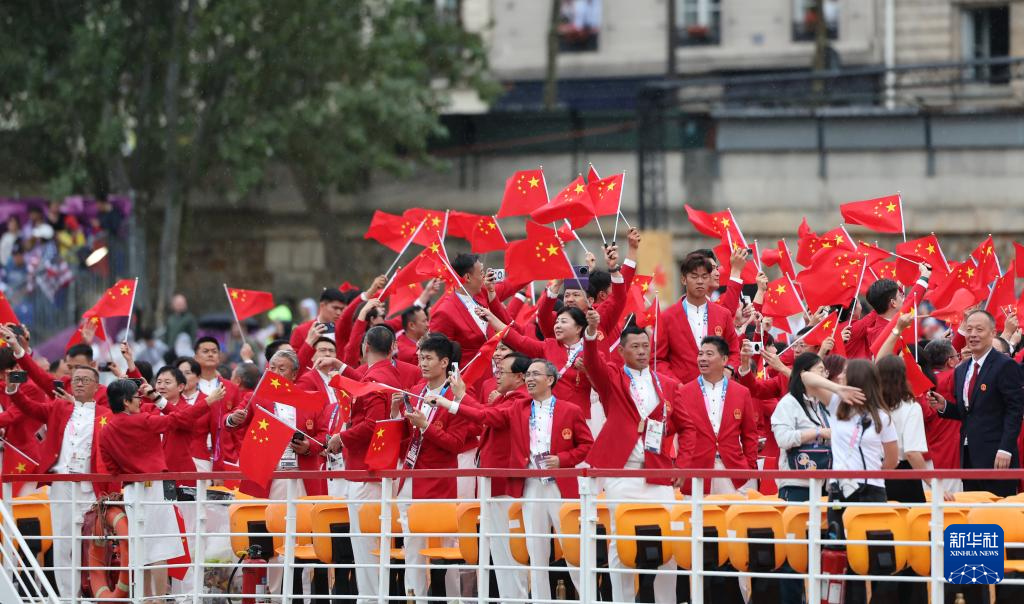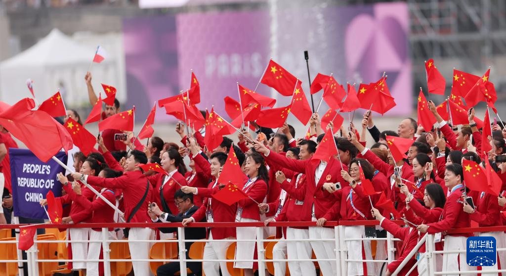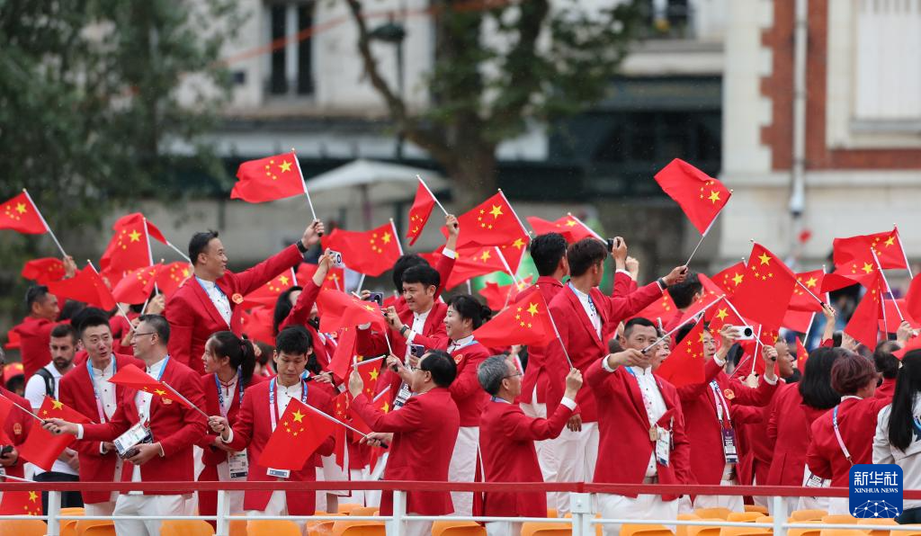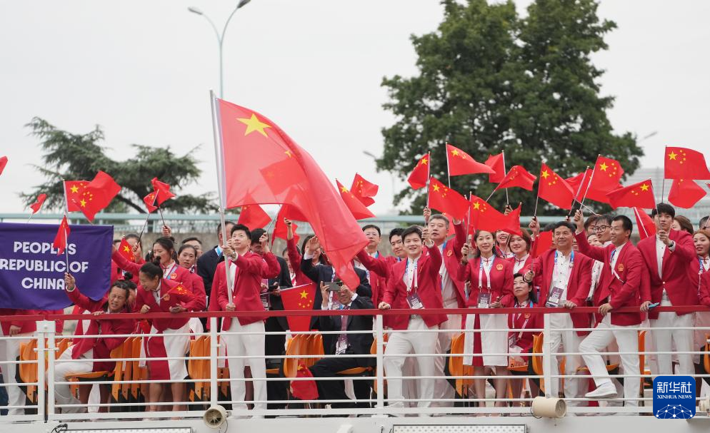 7月26日,中国体育代表团在开幕式上。新华社记者 郭昱 摄