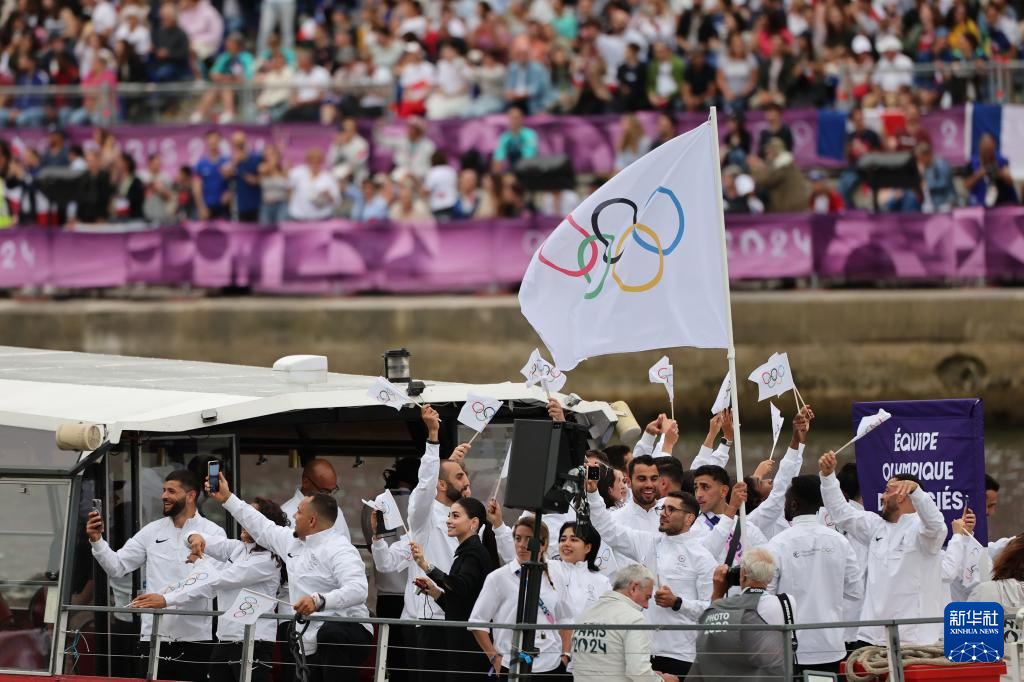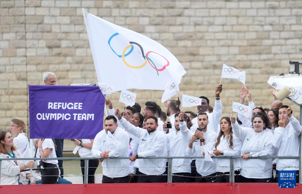 7月26日,难民体育代表团在开幕式上。新华社记者 费茂华 摄