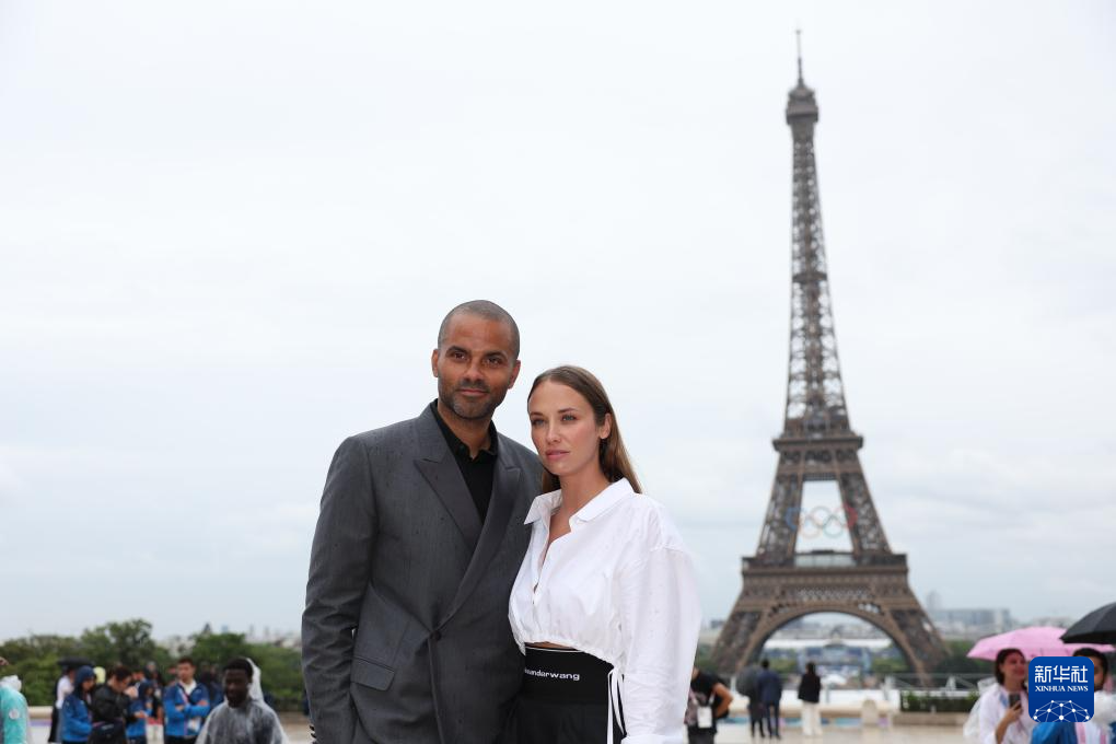 7月26日,法国篮球名宿托尼·帕克(左)在开幕式开始前合影。新华社记者 李颖 摄