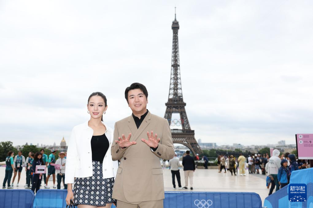 7月26日,钢琴家郎朗(右)在开幕式开始前合影。新华社记者 李颖 摄