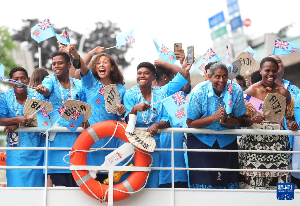 7月26日,斐济体育代表团成员在开幕式上。新华社记者 吕小炜 摄