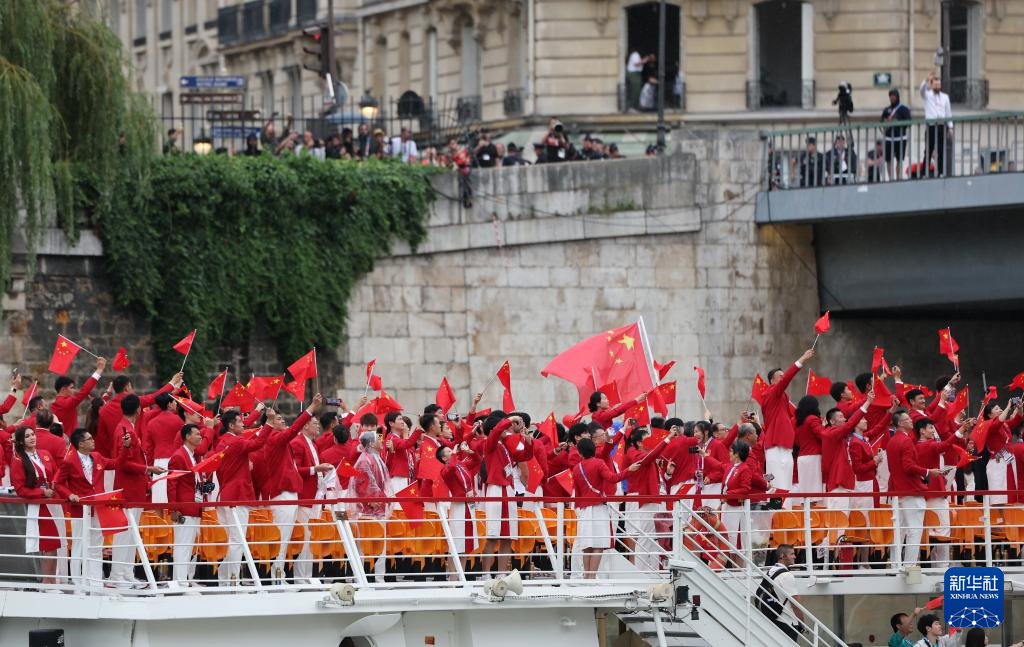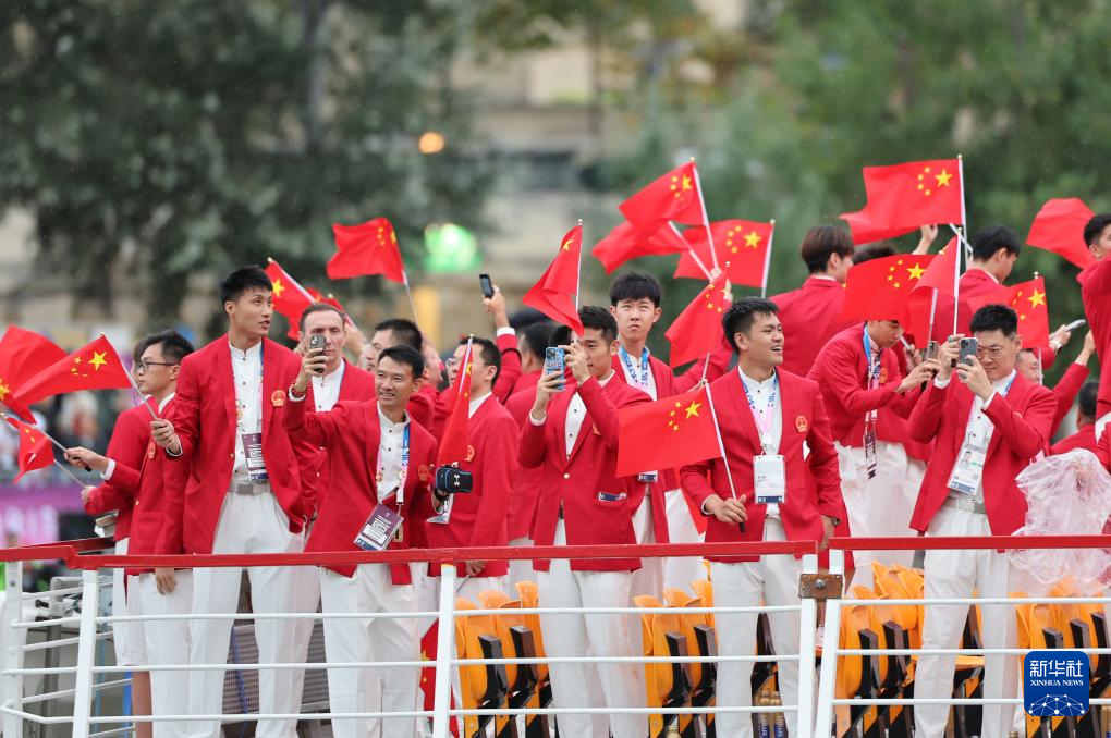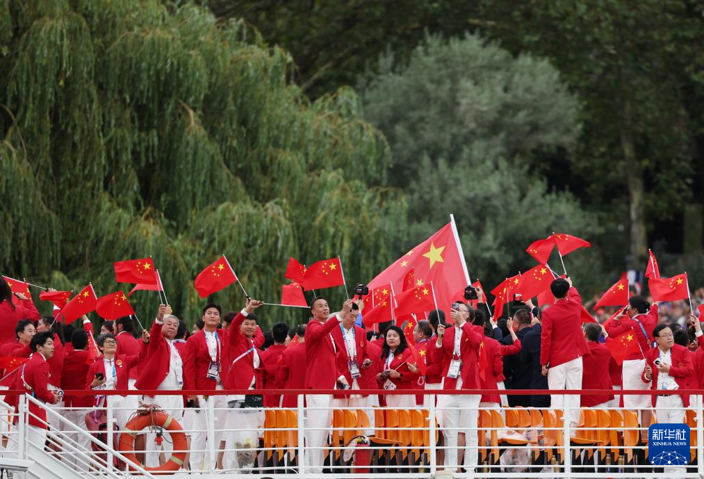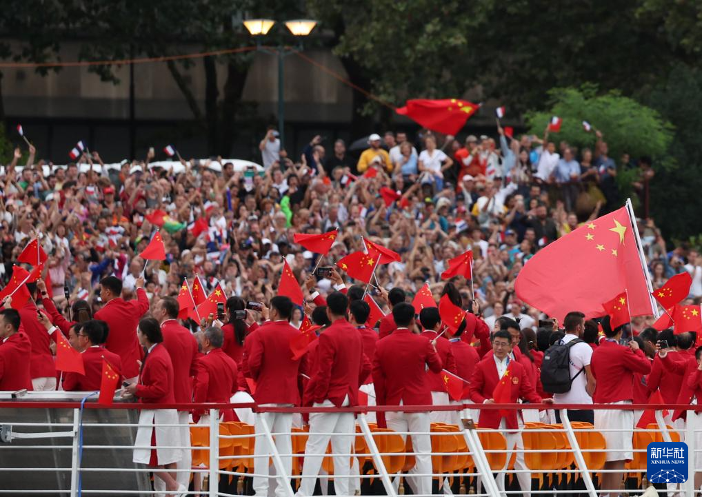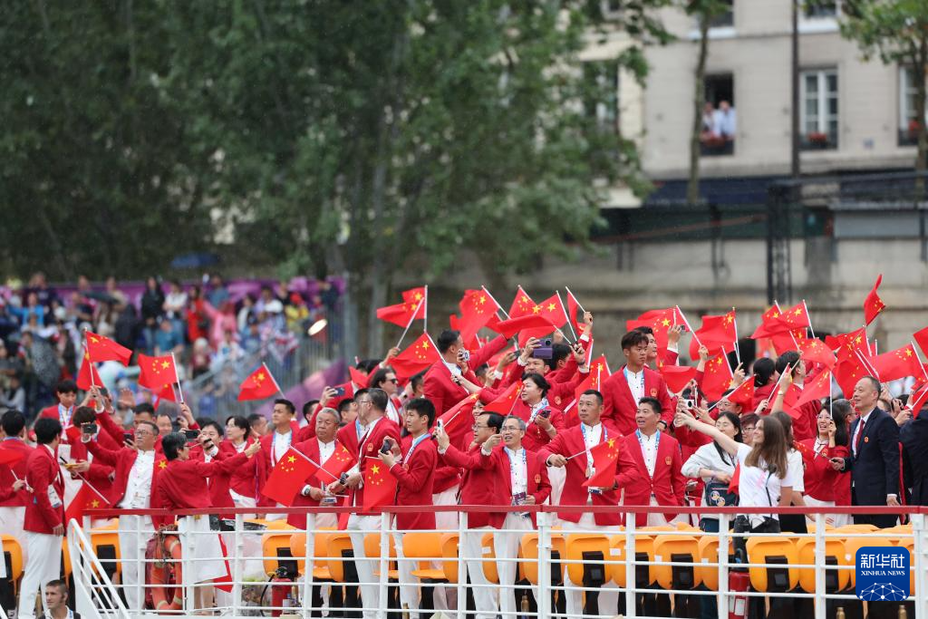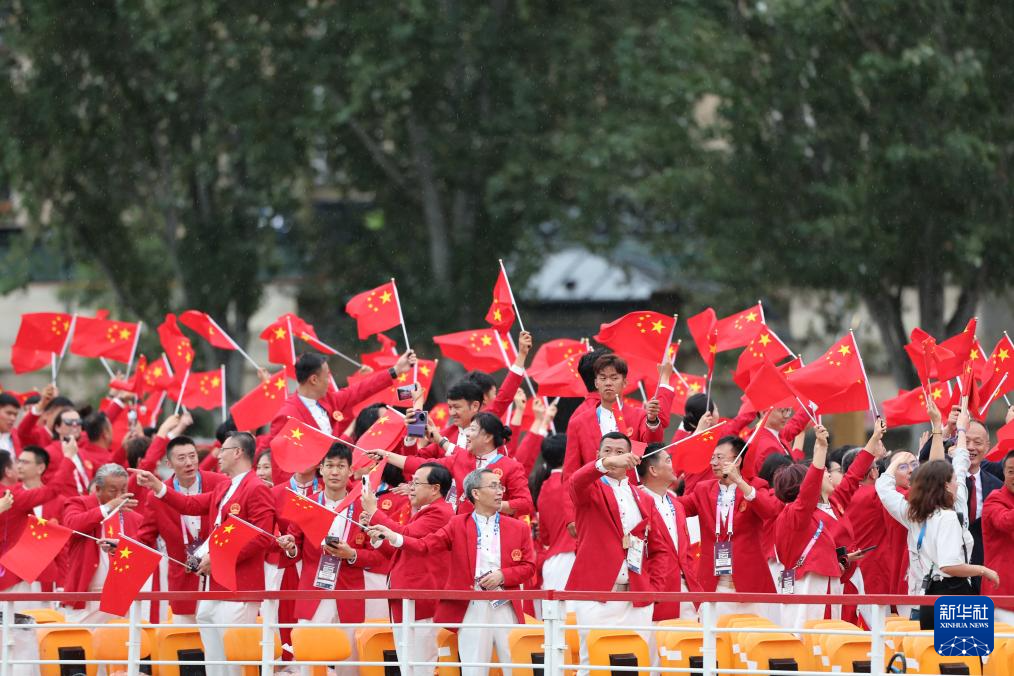 7月26日,中国体育代表团在开幕式上。新华社记者 万象 摄