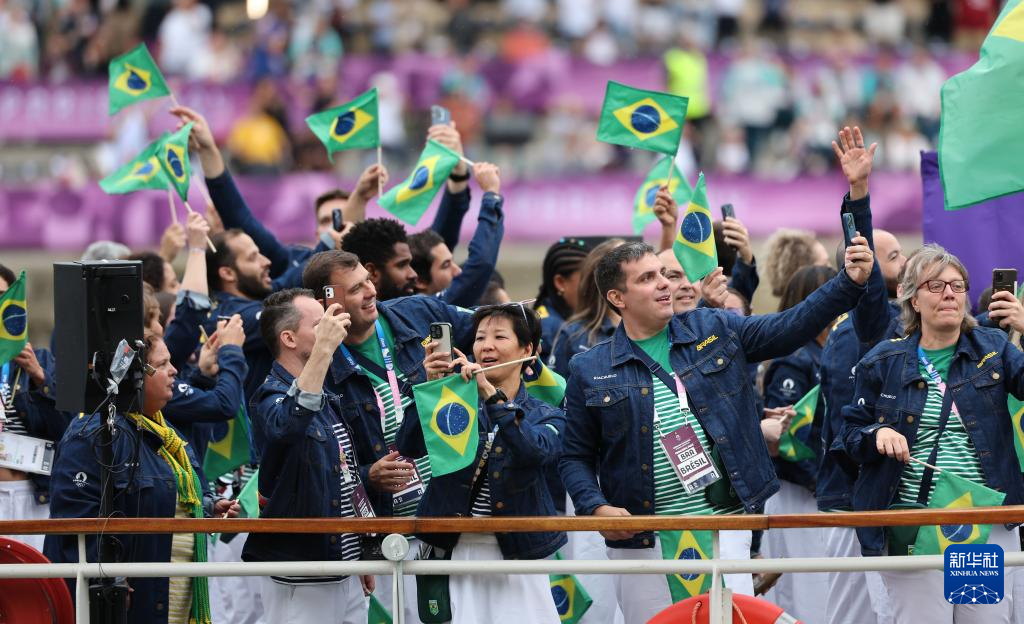 7月26日,巴西体育代表团成员在开幕式上。新华社记者 王东震 摄