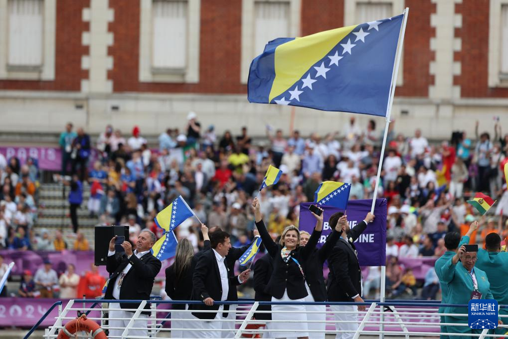 7月26日,波斯尼亚和黑塞哥维那体育代表团在开幕式上。新华社记者 王东震 摄