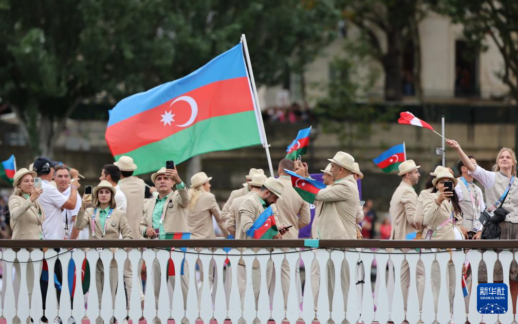 7月26日,阿塞拜疆体育代表团成员在开幕式上。新华社记者 王东震 摄