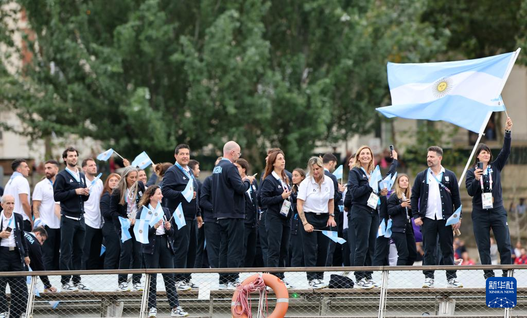 7月26日,阿根廷体育代表团成员在开幕式上。新华社记者 王东震 摄