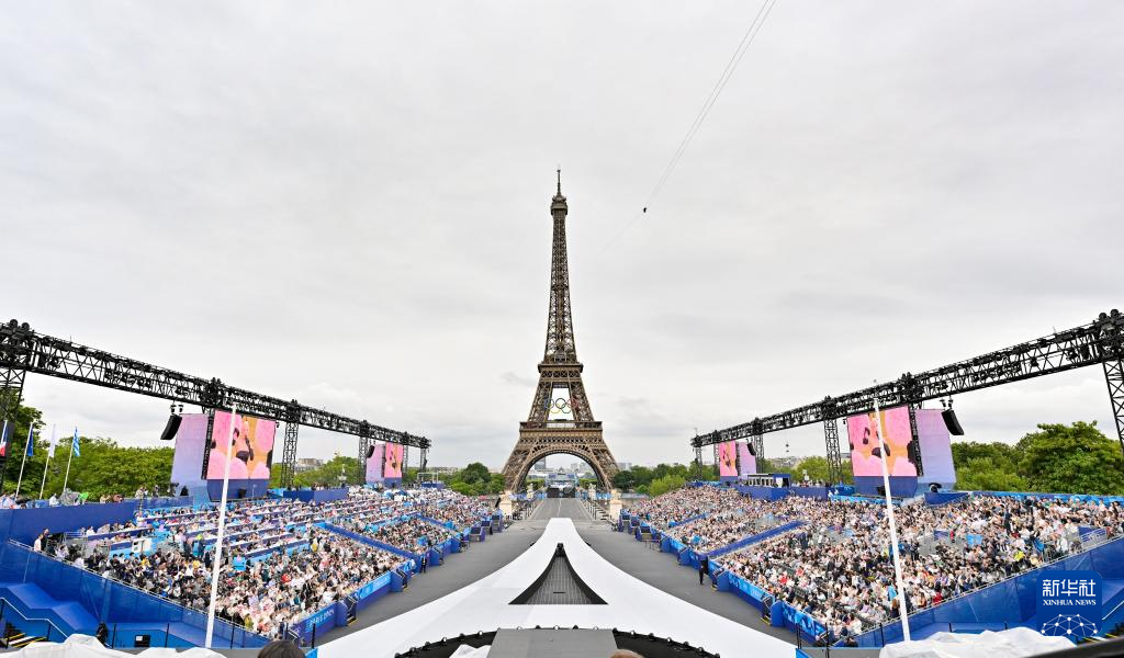 这是7月26日在特罗卡德罗广场拍摄的开幕式庆祝仪式现场。新华社记者 高静 摄