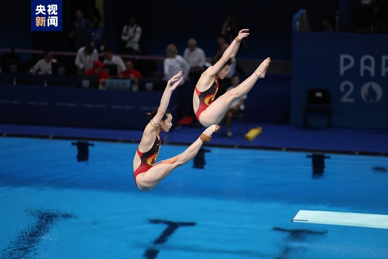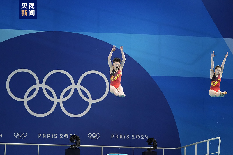 7月27日,在巴黎奥运会跳水女子双人3米板比赛中,中国组合陈艺文/昌雅妮提前锁定金牌。
