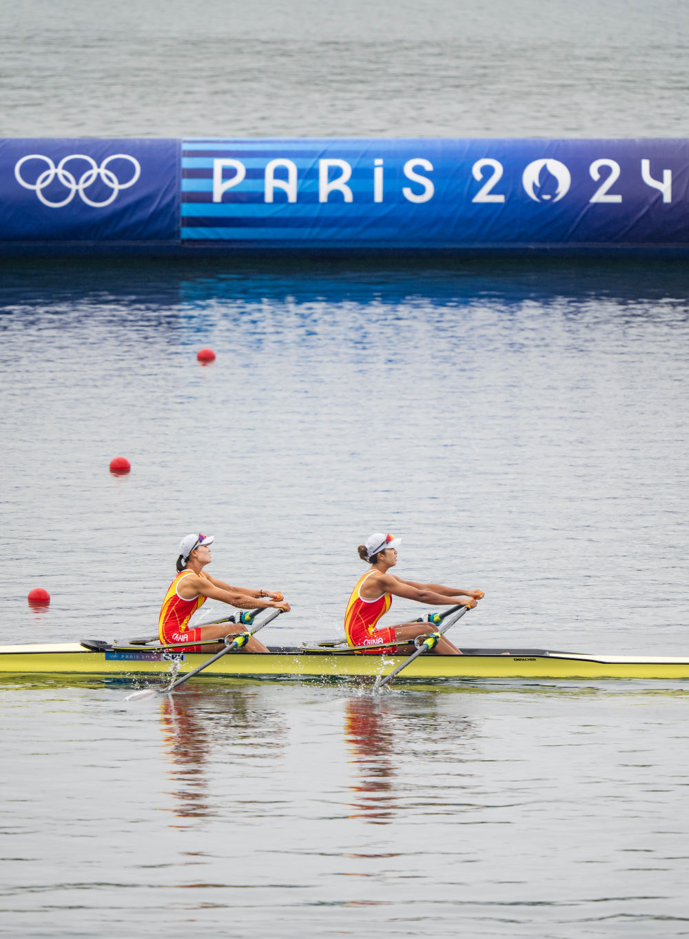 当天进行了男、女单人双桨、双人双桨和四人双桨六个项目的预赛。女子双人双桨赛场,与鲁诗雨/沈双美同组的包括卫冕冠军、罗马尼亚组合博德纳尔/拉迪斯。中国姑娘们发挥稳定,以6分58秒85的成绩从一众欧洲强队中突出重围,成功进入下一轮。