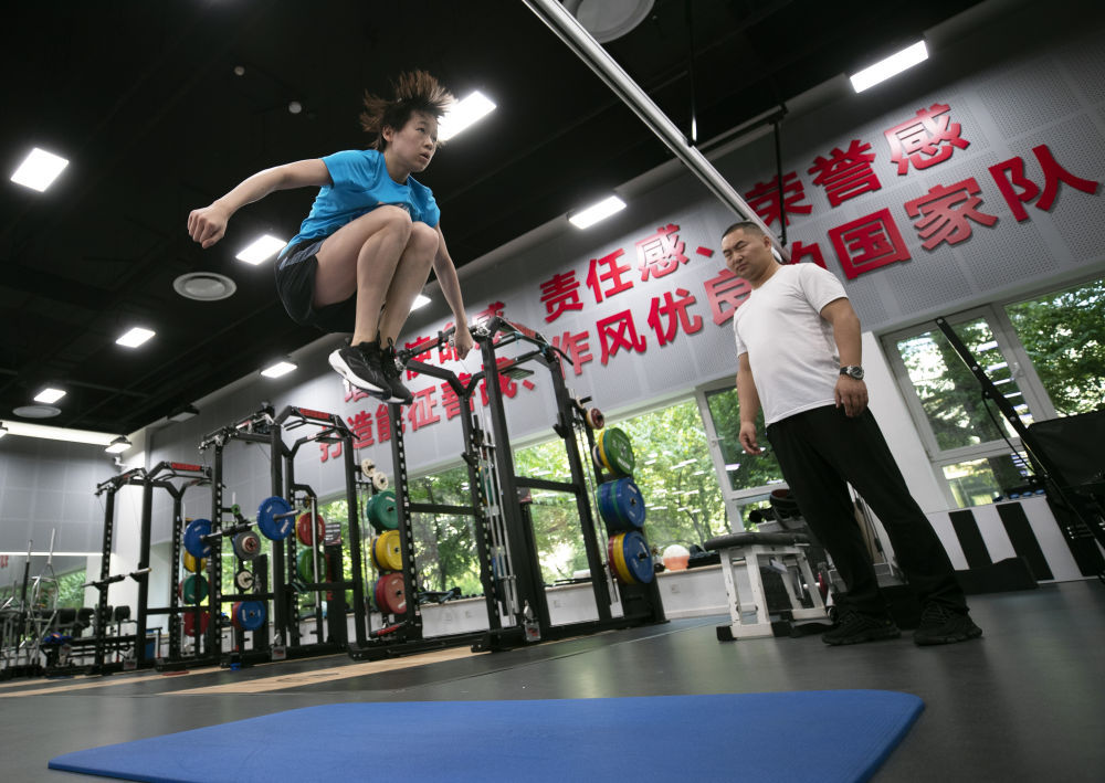 5月7日,中国跳水队队员在国家体育总局训练局进行陆上训练,备战巴黎奥运会。新华社记者 雒圆 摄