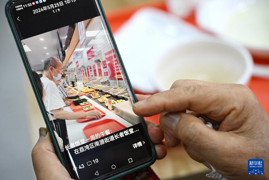 家住广州市荔湾区南源街道塘前新社区的81岁阿婆杨欣慈,说到街道里的长者饭堂,就赞不绝口。两个月以来,只要天气好,她几乎每天都来就餐,并在自己的微信“朋友圈”里分享长者饭堂的点点滴滴,引得朋友们连连点赞。