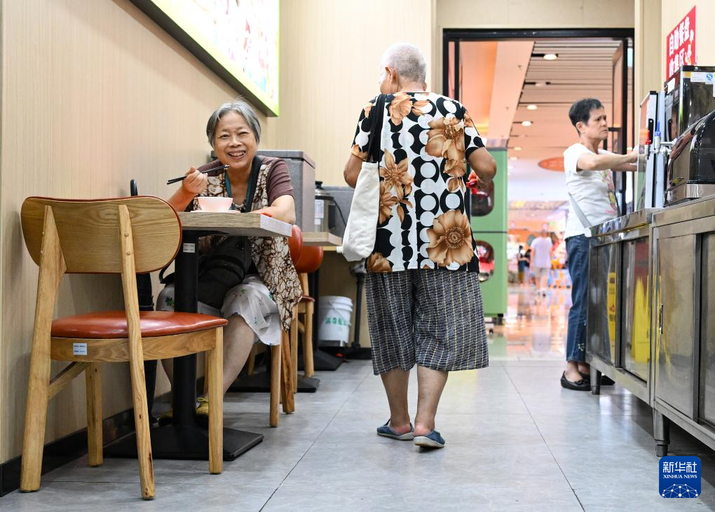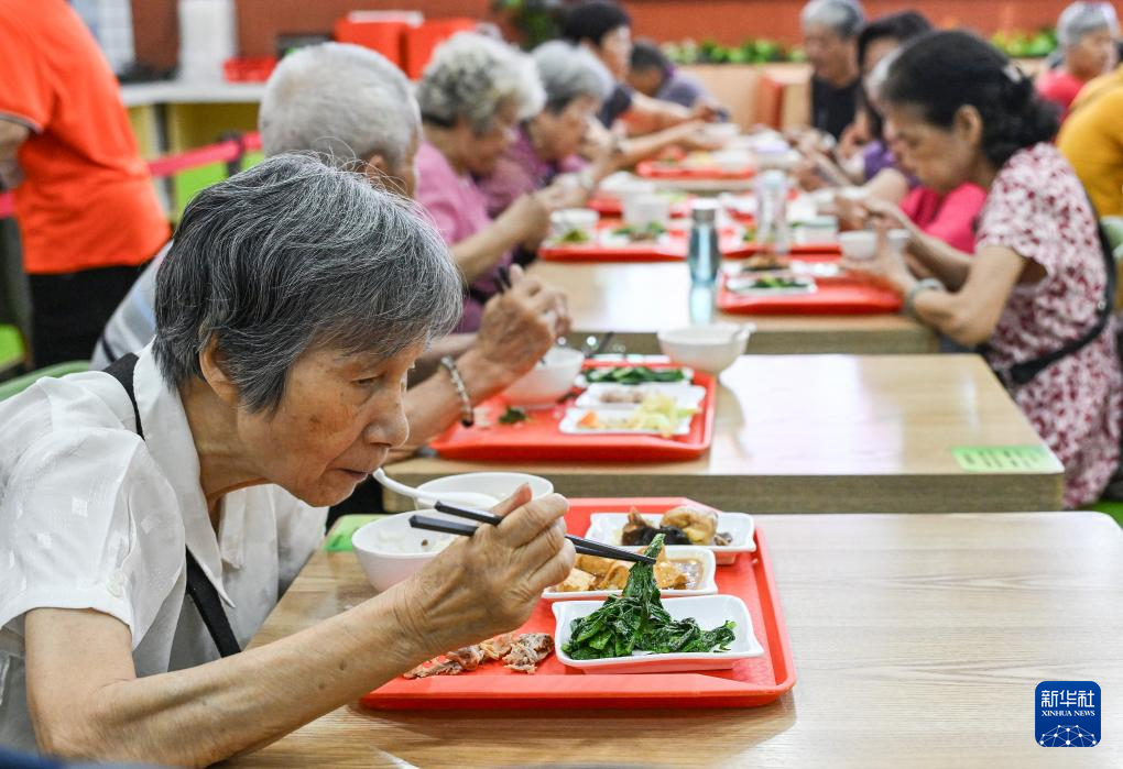 老人们在广州市荔湾区南源街道长者饭堂进餐(7月24日摄)。新华社记者 李贺 摄