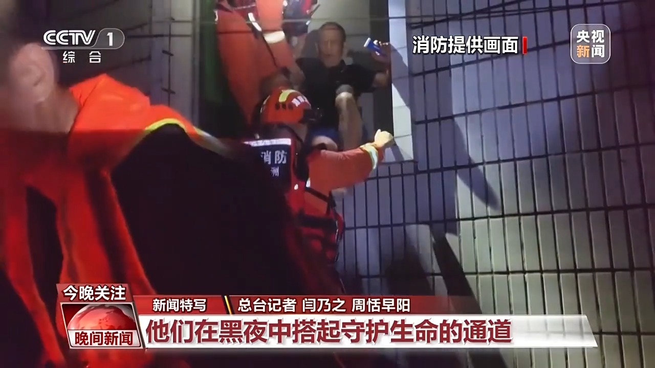 当晚,武警湖南总队湘潭支队100余名官兵也赶往现场紧急救援。画面中正背着群众转移的人,是武警湖南总队湘潭支队的战士。