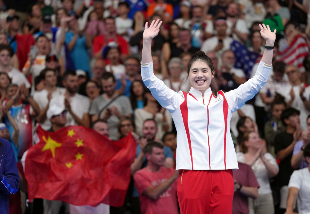 7月28日,中国选手张雨霏在赛后向观众致意。新华社记者 王鹏 摄