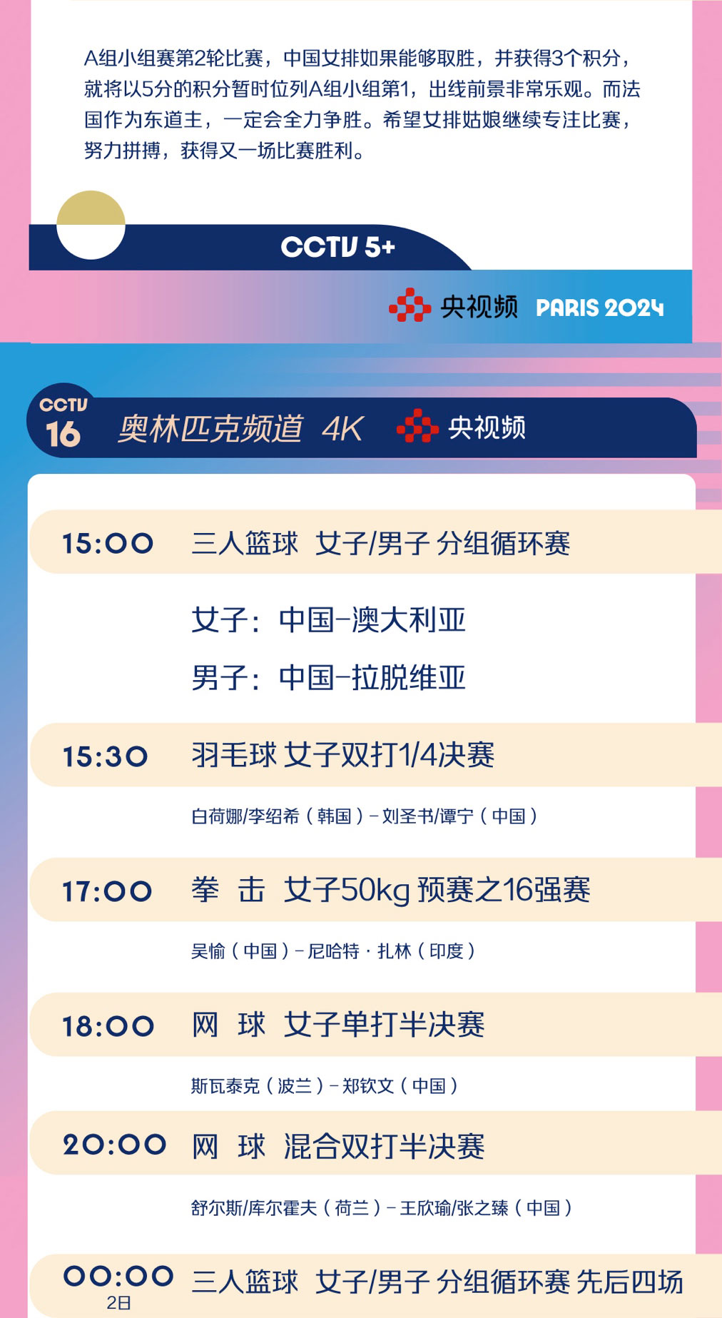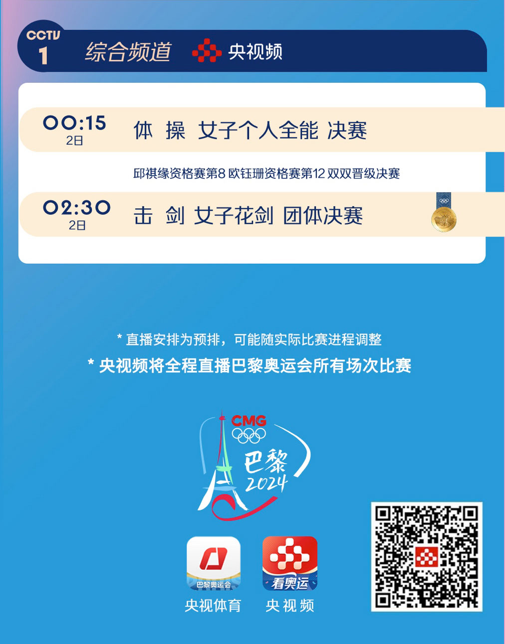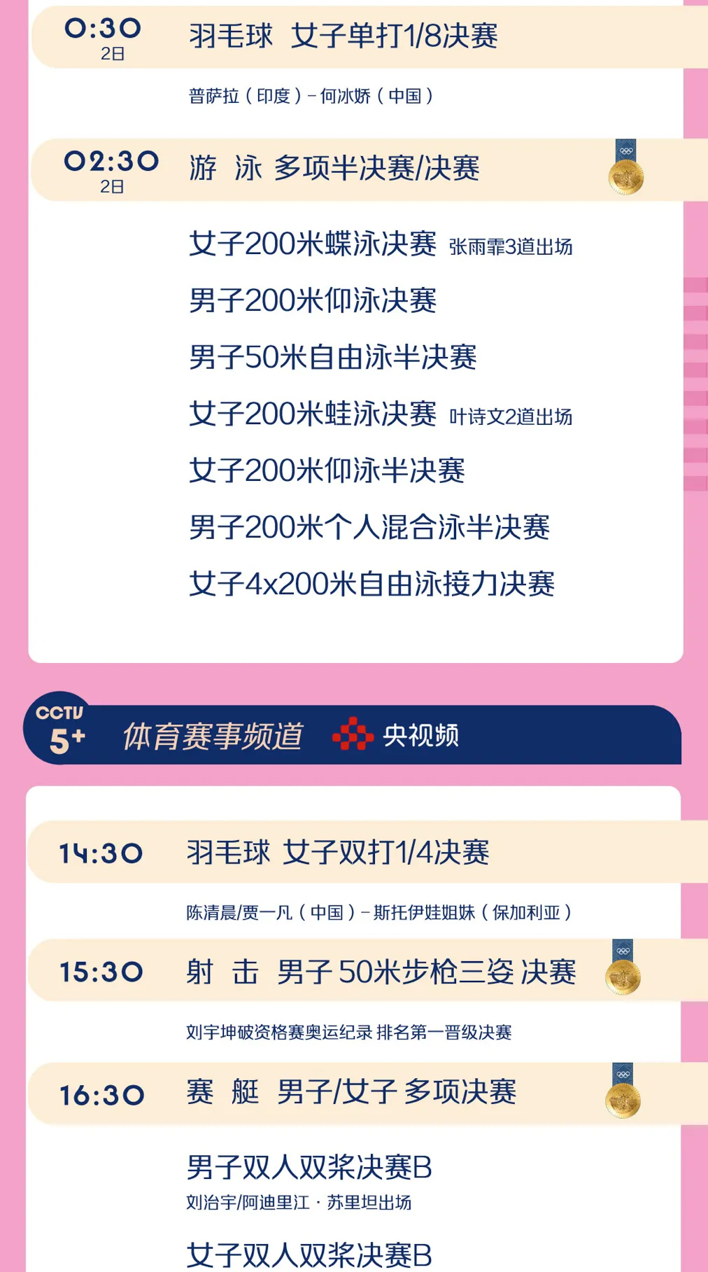 原标题:今日奥运看点来了!〔2024.08.01〕