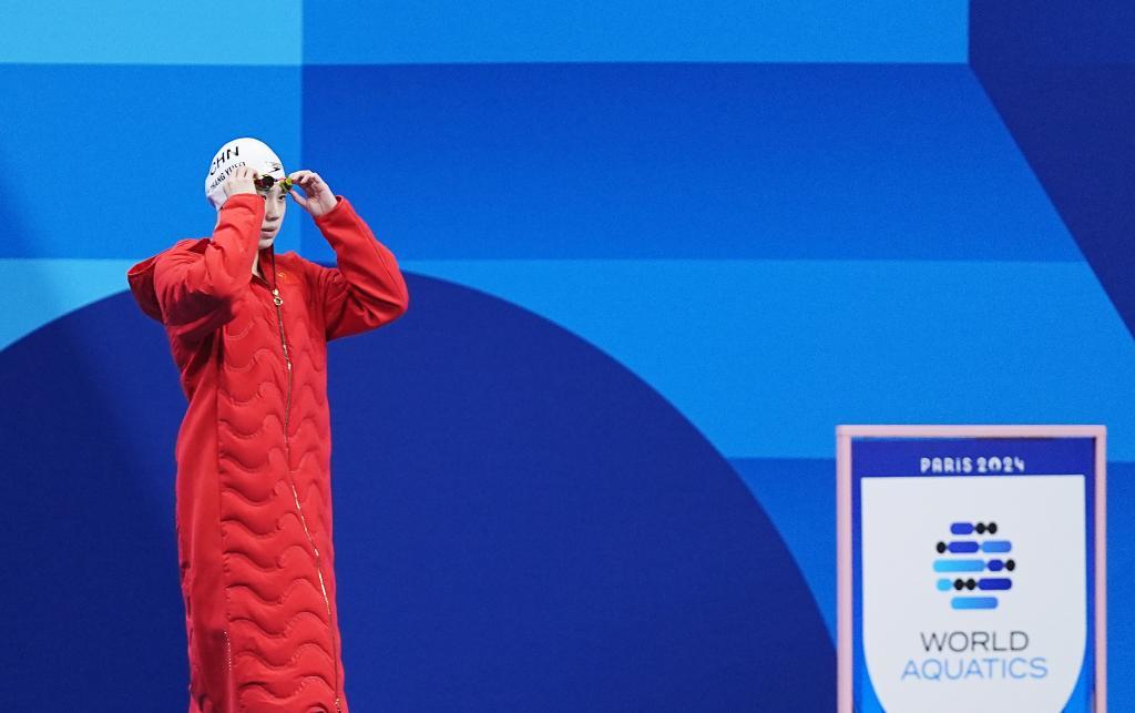 8月1日,季军中国选手张雨霏在颁奖仪式上。新华社记者 薛宇舸 摄