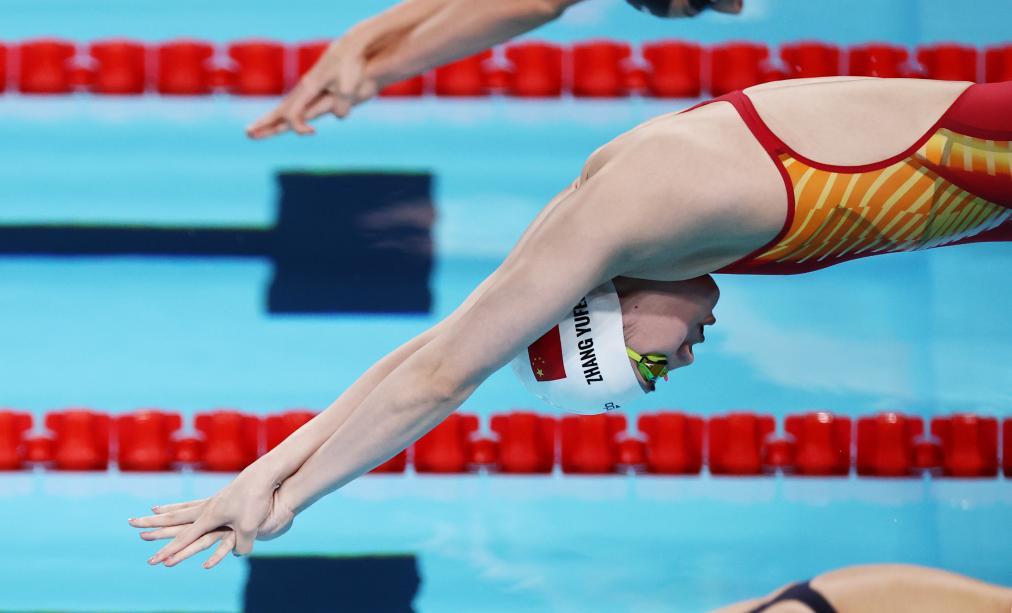 8月1日,中国选手张雨霏在比赛中出发。新华社记者 雒圆 摄