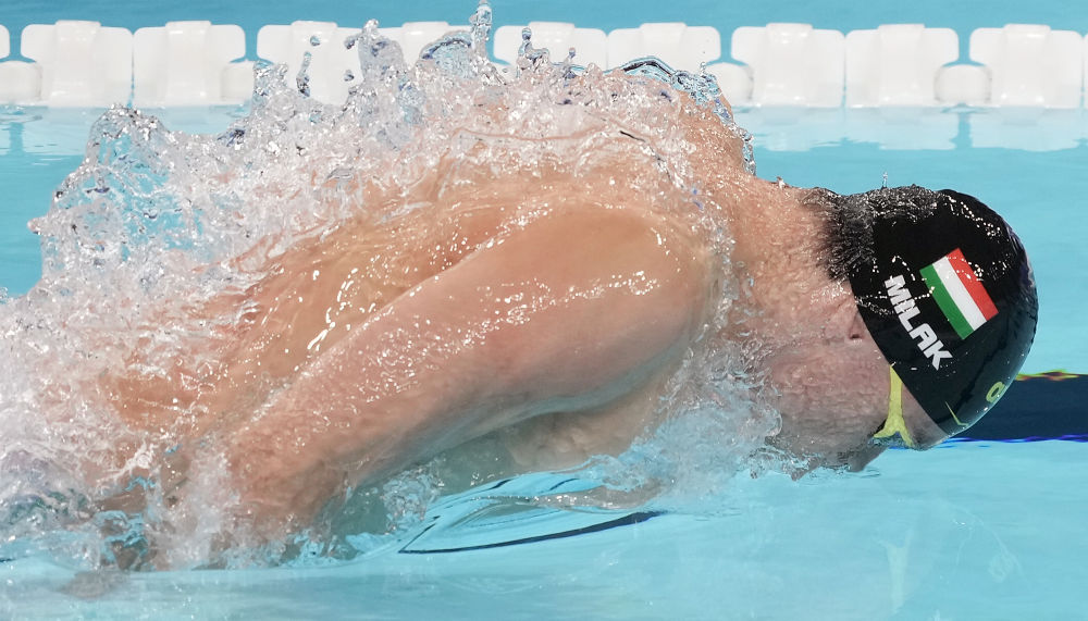 男子100米蝶泳决赛中,东京奥运会亚军、匈牙利名将米拉克终于给奖牌换色,以49秒90摘金。银牌和铜牌被加拿大选手包揽,连多和卡伦分获亚军和季军。