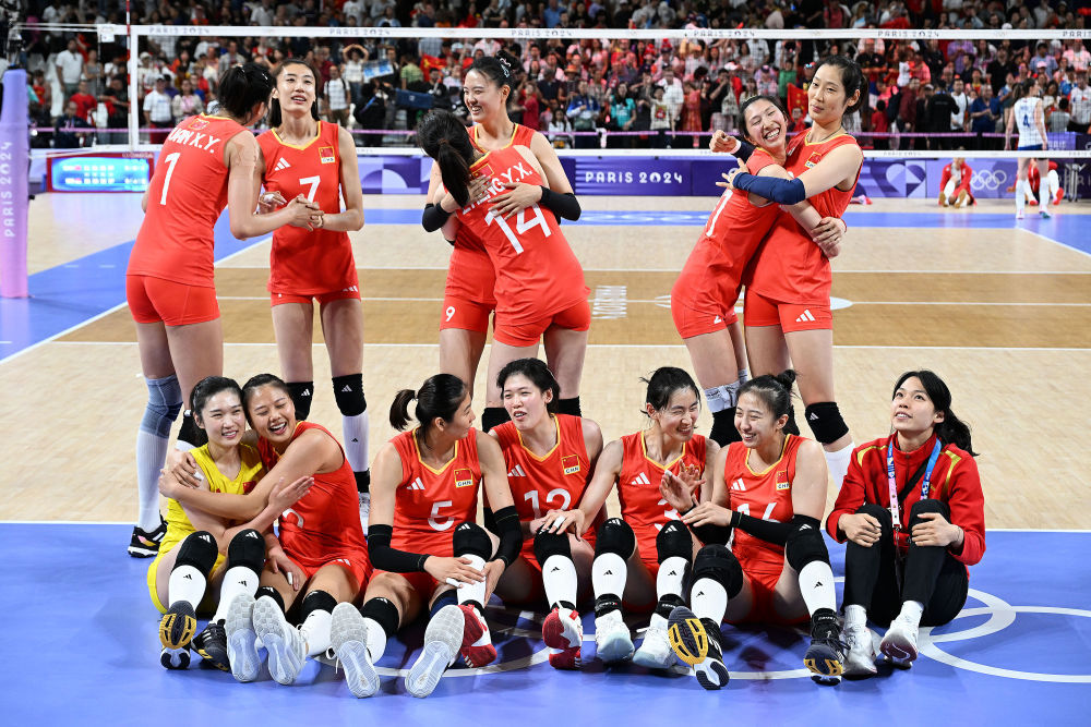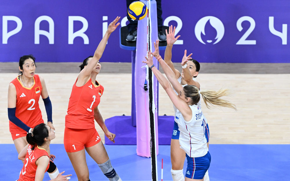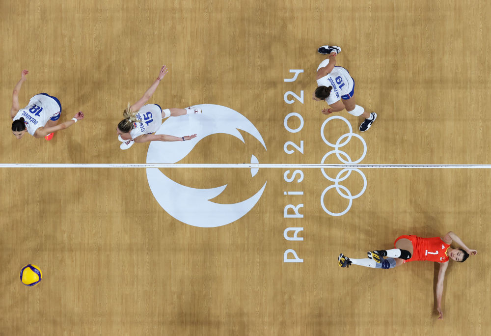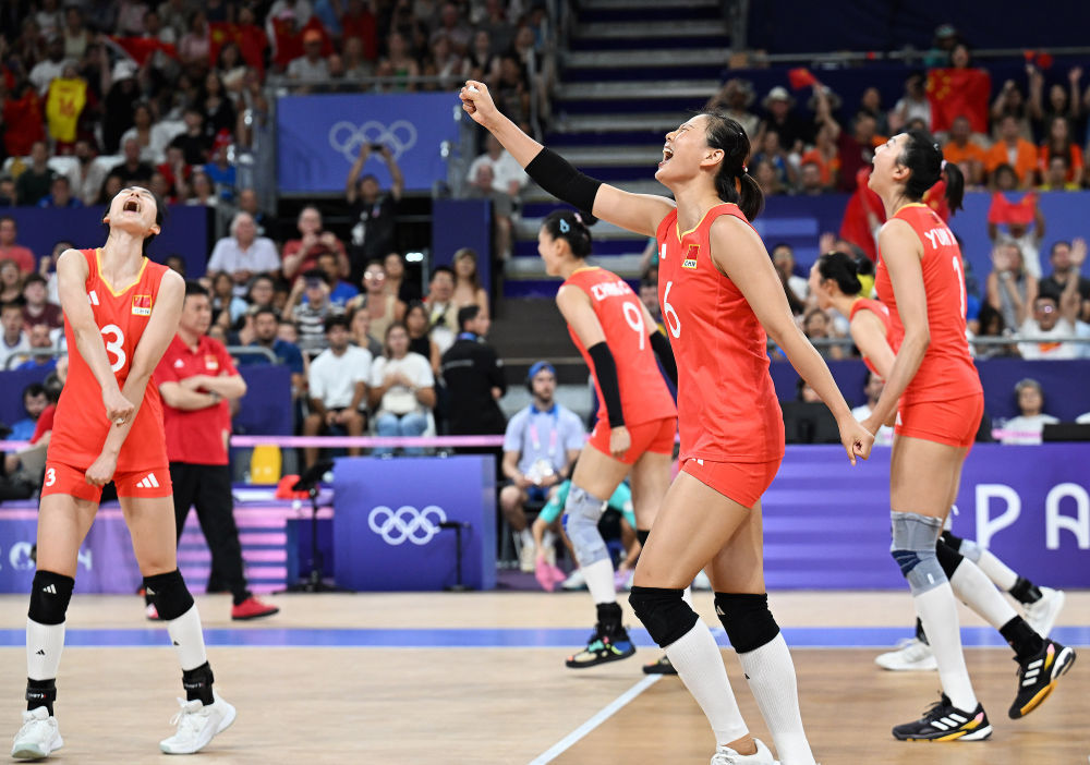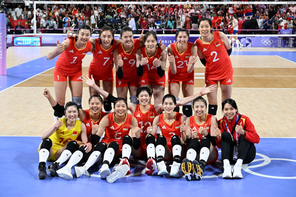 8月4日,在巴黎奥运会排球女子小组赛A组比赛中,中国队3比1战胜塞尔维亚队,以3战全胜、排名小组第一的成绩晋级八强。