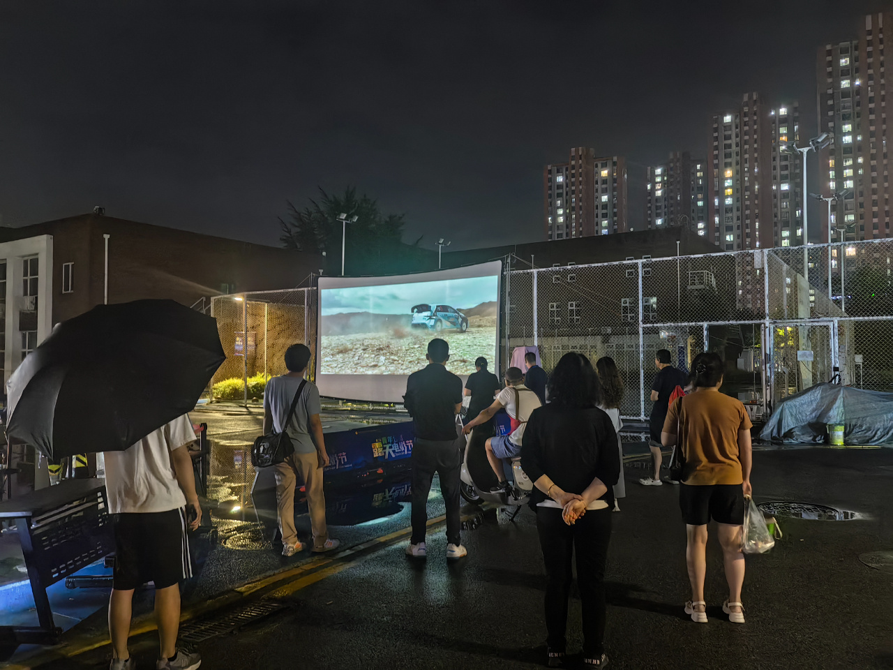 逛完市集,职工不但可以在摊位附近的椅子上歇歇脚,还能在经开区总工会青年公寓工会服务站“第二届露天电影节”职工文化活动上看一场露天电影。七点左右,天色逐渐暗淡,一抹亮色出现在前方的白色幕布上,露天电影节首场电影《飞驰人生2》如期播出,精彩的剧情、绚丽的色彩吸引了越来越多的观众驻足停留,大家跟随着剧情的发展惊呼、鼓掌,享受着雨后的文化盛宴。