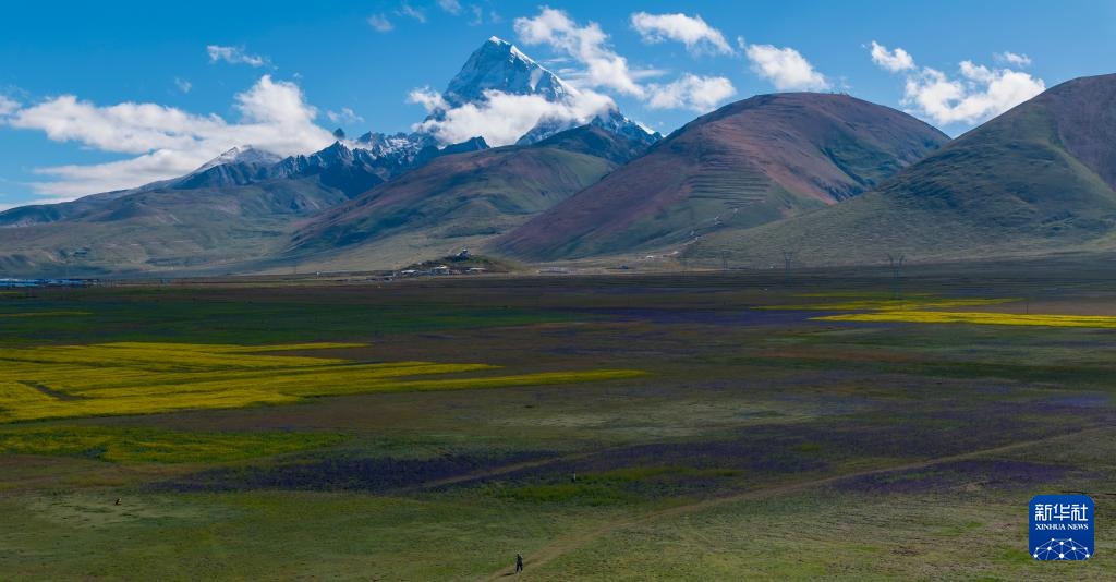 这是8月1日从帕里草原拍摄的卓木拉日雪山(无人机照片)。新华社记者 姜帆 摄