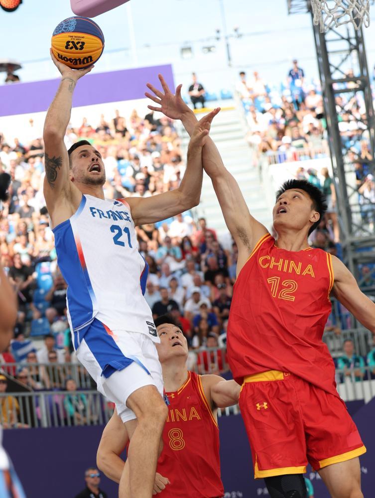 男子三人篮球单循环赛末轮中国队对阵法国队,战至4:4后,法国队连续得分将比分拉开,自此比赛再无悬念,法国队21:12轻松获胜。此役法国队2分球的命中率为36%,中国队仅14%。