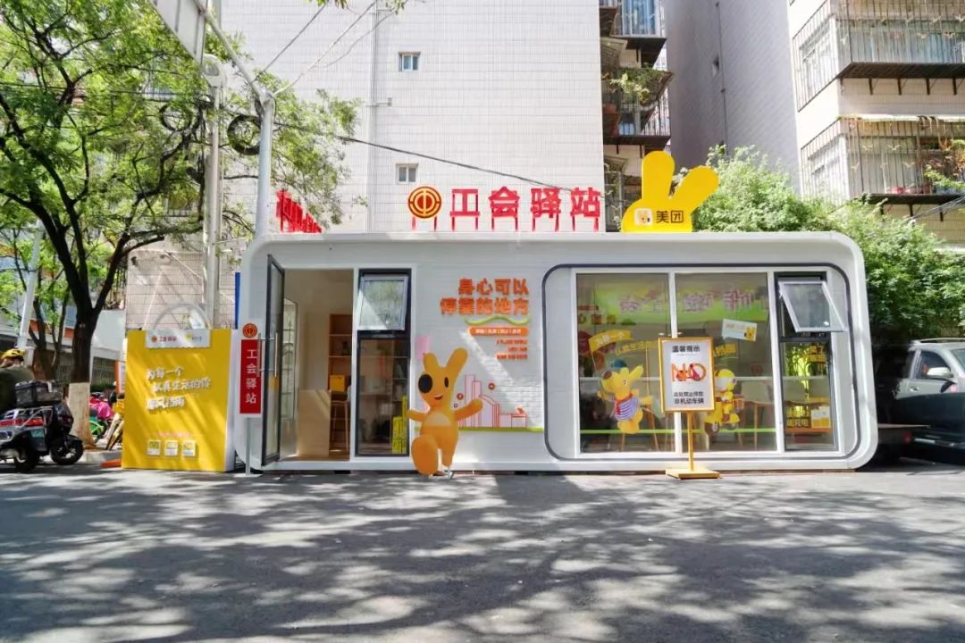当然,富春街工会驿站的独特之处不仅仅局限于外观,而是它的共建机制。五华区大观街道总工会与美团云南总部签订共建协议,将工会驿站和美团职工服务驿站有机融合,通过资源整合、形成合力,共同打造云南首个“工会+头部平台企业”共建的工会驿站。