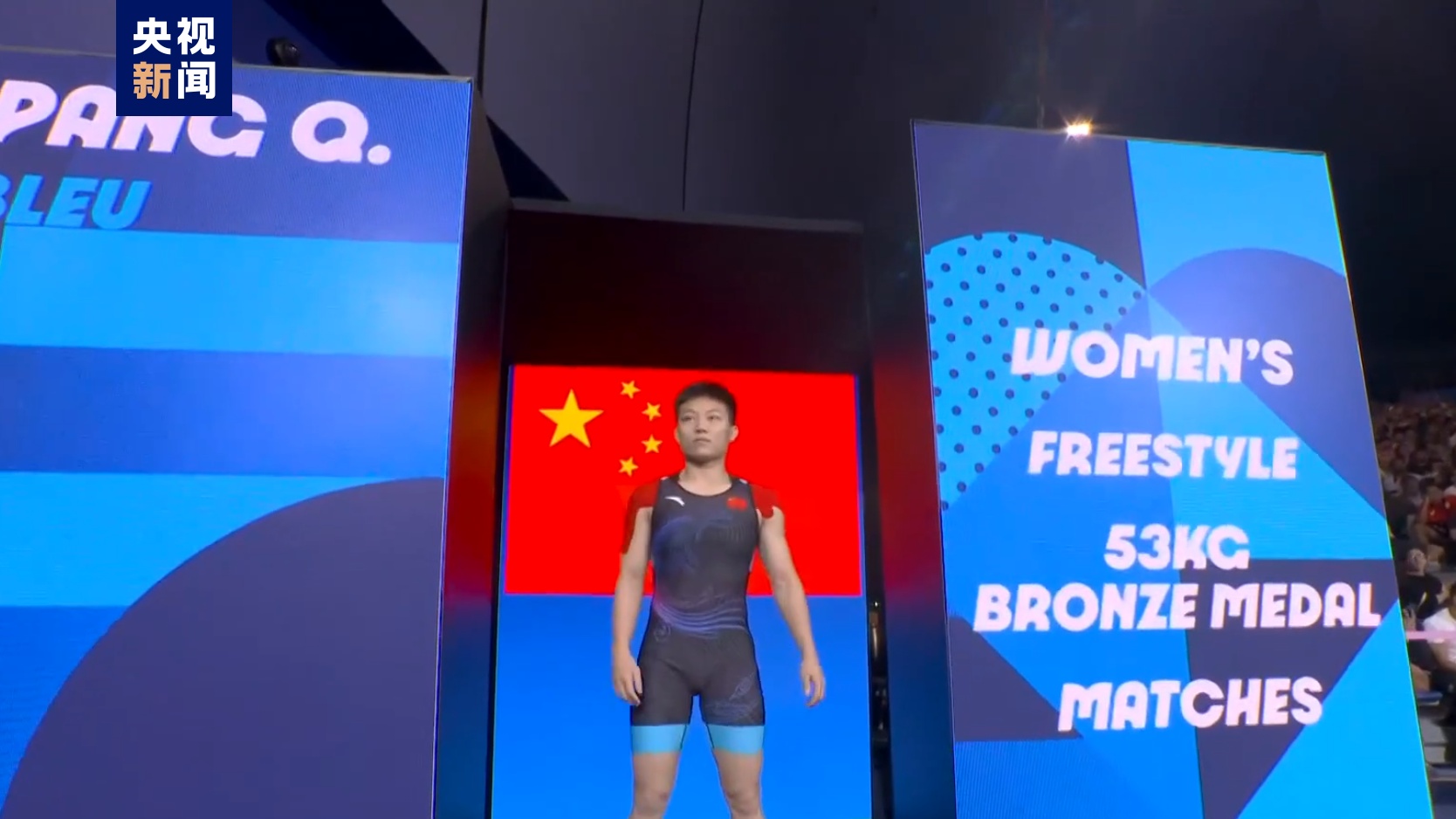 北京时间8月9日,在巴黎奥运会摔跤女子自由式53公斤级铜牌赛中,中国选手庞倩玉夺得铜牌。