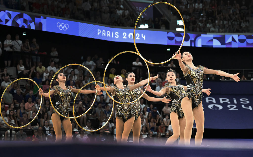 8月9日,在巴黎奥运会艺术体操团体全能预赛中,中国队以第五名的成绩,晋级决赛。