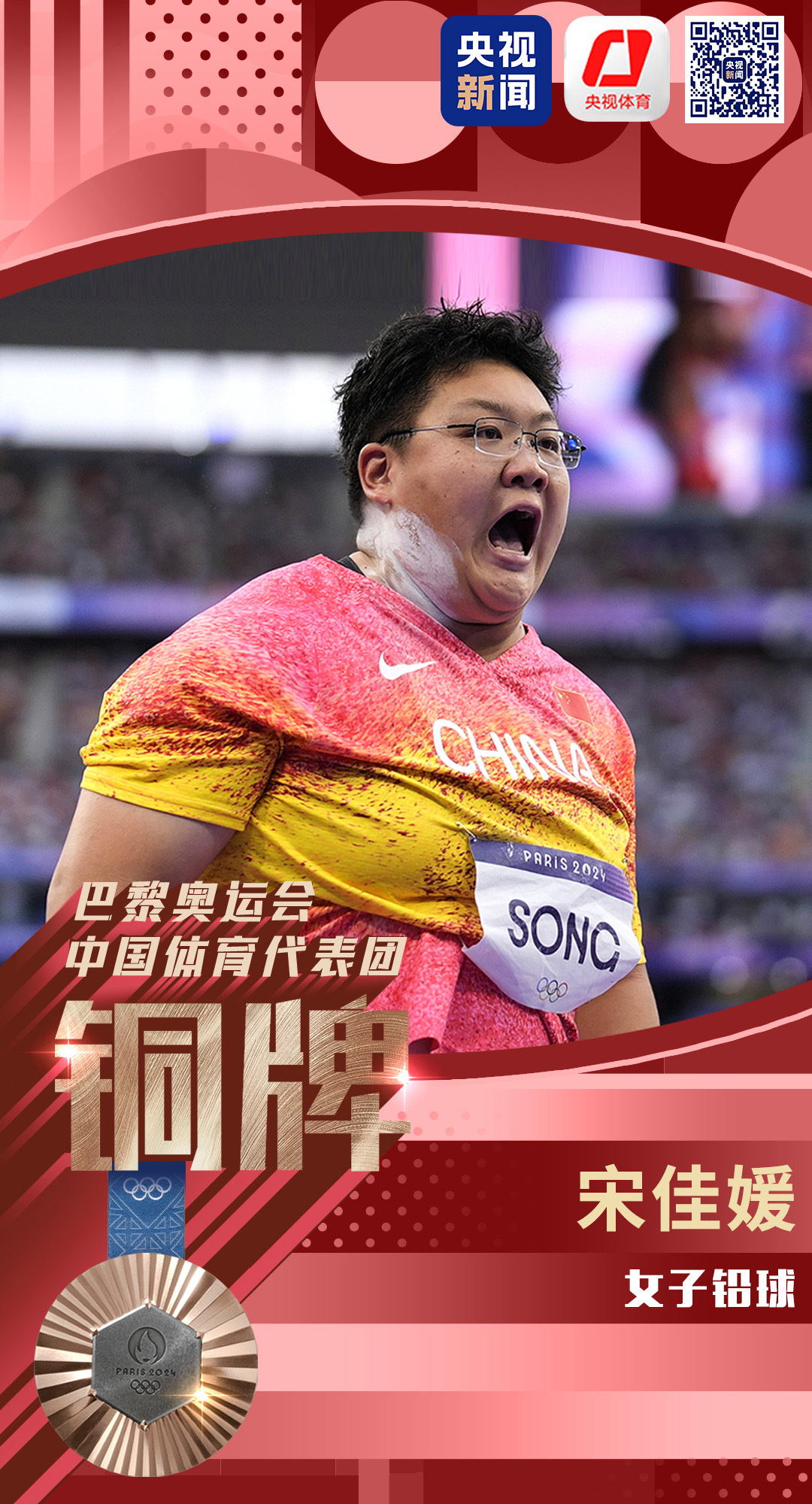 北京时间8月10日,在巴黎奥运会女子铅球决赛中,中国选手宋佳媛夺得铜牌。